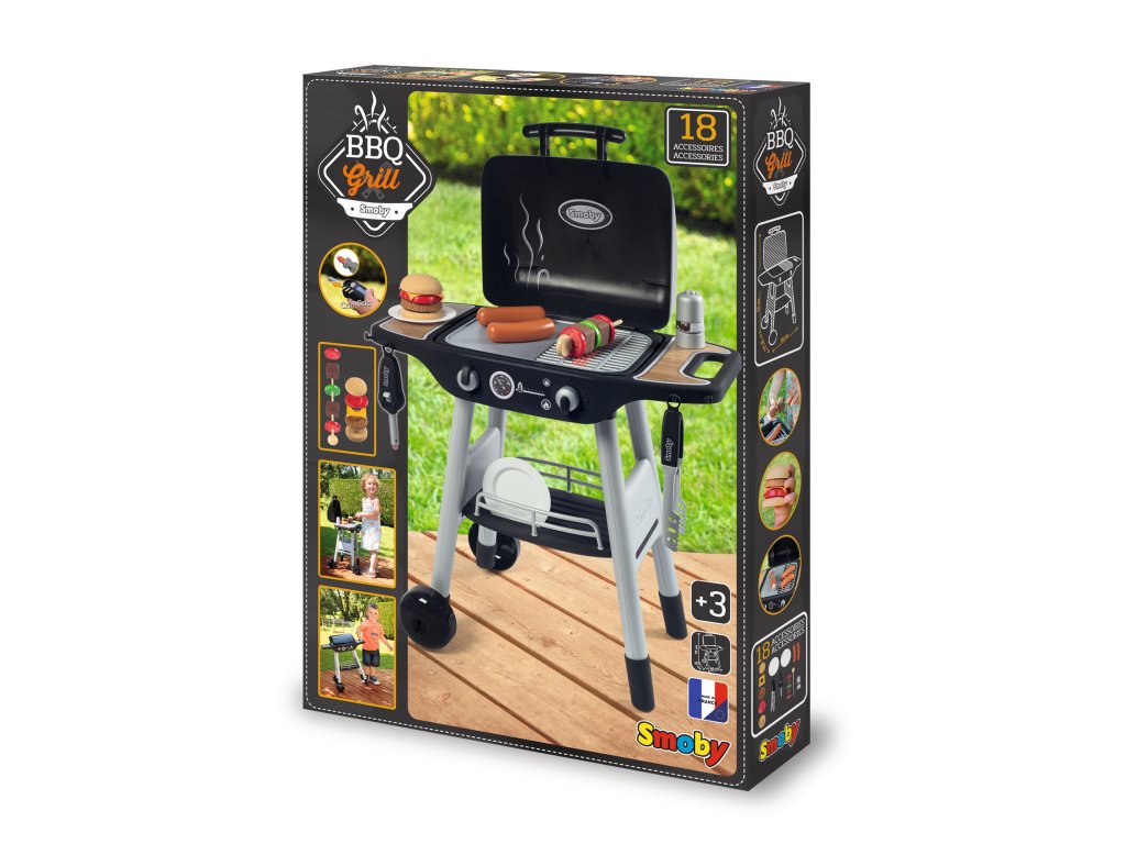 Záhradný gril s vekom. Súčasťou grilu je grilovacie náradie a potraviny na prípravu pochúťok. Magický systém sa zaťahovacími plameny. Obsahuje 18 ks príslušenstva. Rozmery: 50 x 72,2 x 37 cm.Dodatočné parametre