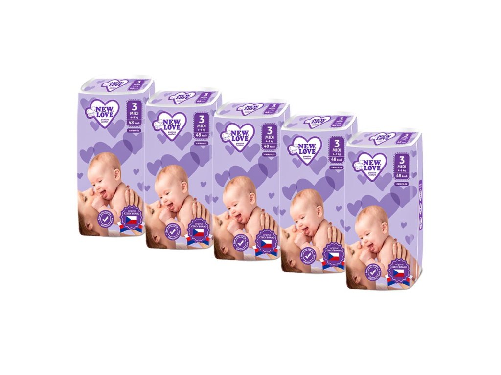 MEGAPACK Detské jednorazové plienky New Love Premium comfort 3 MIDI 4-9 kg 5x48 ks - 40674
