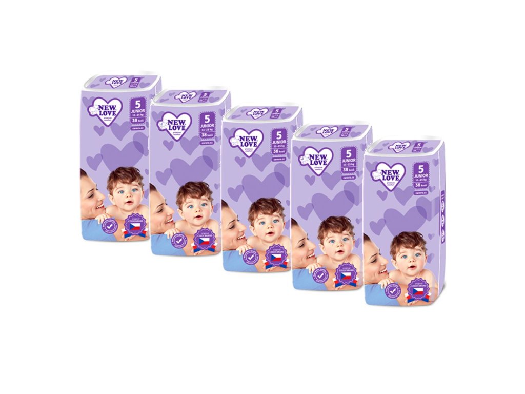 MEGAPACK Detské jednorazové plienky New Love Premium comfort 5 JUNIOR 11-25 kg 5x38 ks - 40676