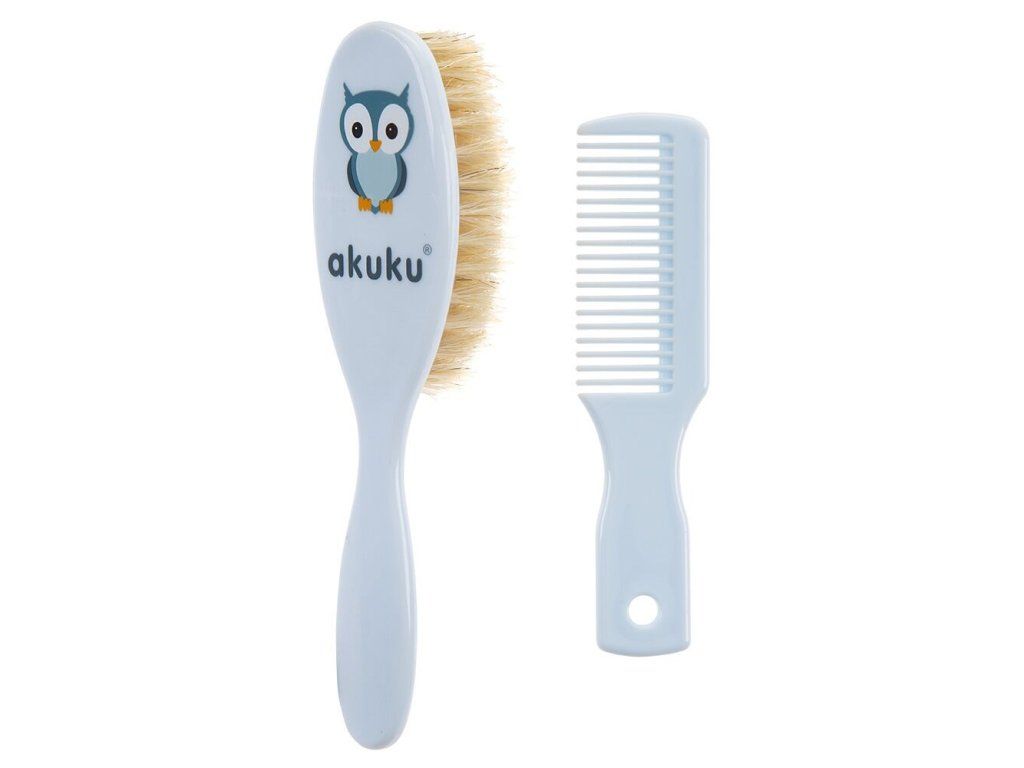 Kefka a hrebienok s prírodným vlasom Akuku. Vyrobené bez BPA. Rozmery: hrebienok: cca 11 cm, kefka: cca 15 cm. Vhodné pre deti od narodenia.Dodatočné parametre