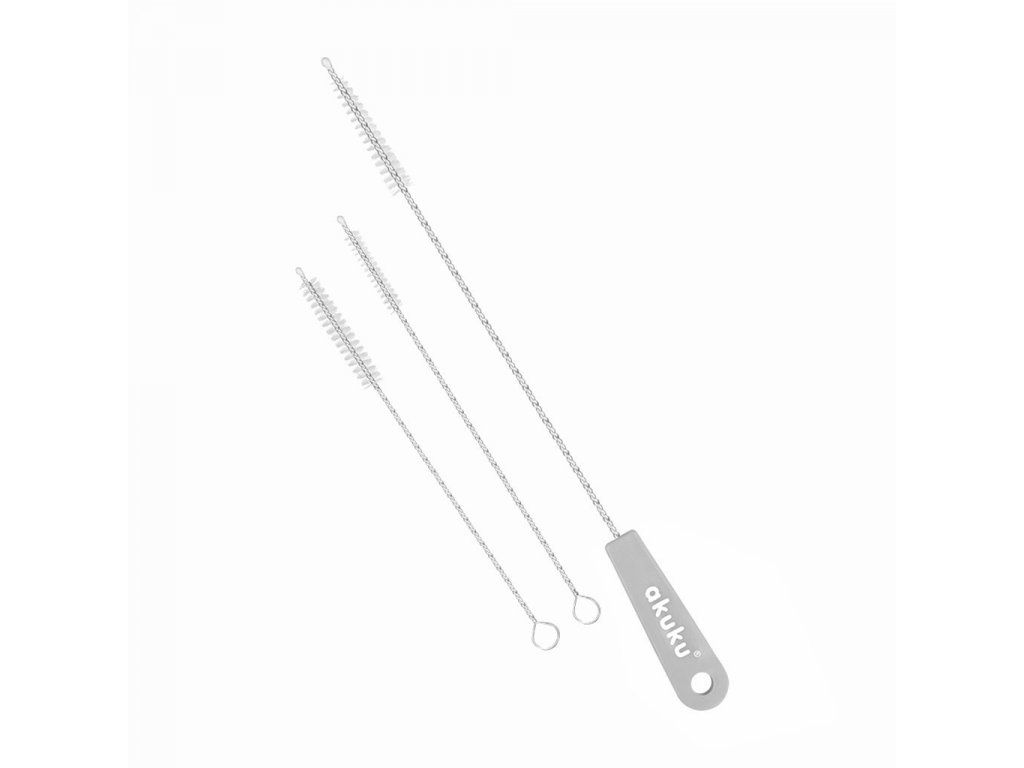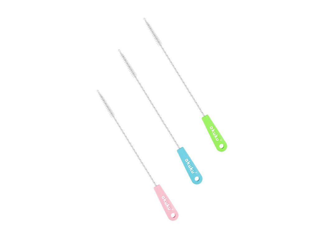 Sada výnimočne tenkých kefiek, ktoré dokonale vyčistia neprístupné vnútorné časti slamiek a trubičiek detských fliaš a cumlíkov. Vhodne tvarované hroty sa dostanú do ťažko prístupných miest. Každá kefka má mäkké štetinky a pohodlnú rukoväť. K dispozícii v troch farbách: zelenej, modrej a ružovej.