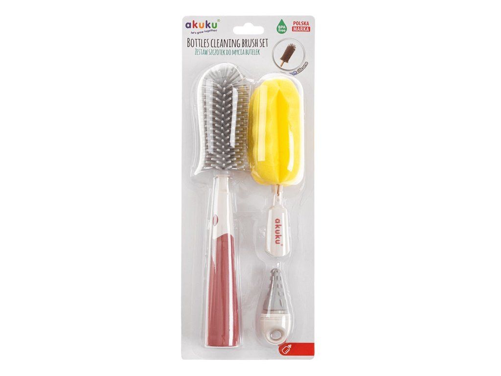 Sada kartáčov na čistenie fliaš a cumlíkov 3v1 Akuku - 48858