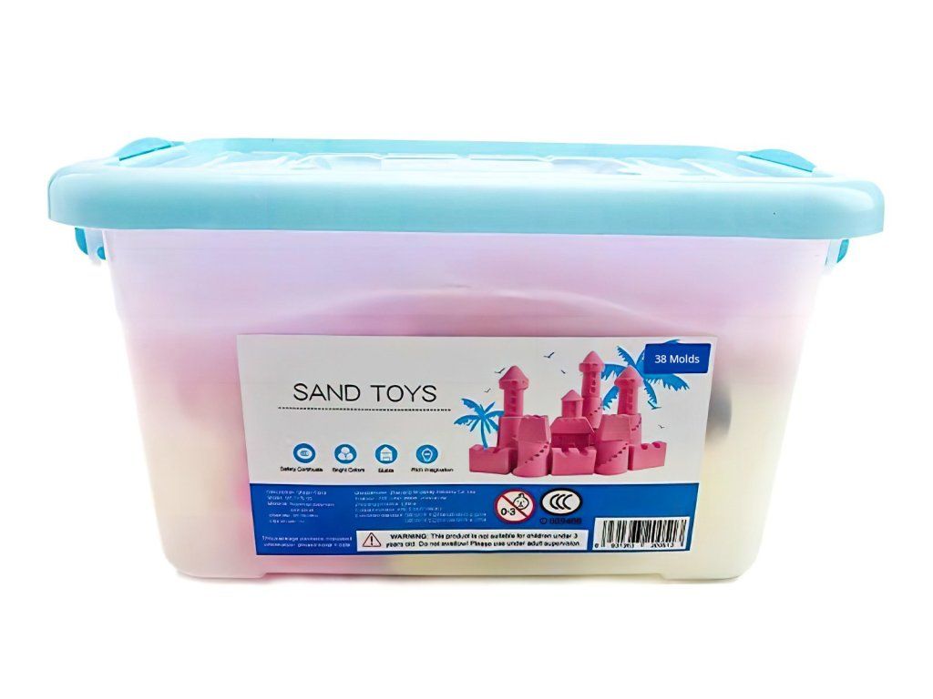 Kinetický piesok je doplnený o rôzne formičky, čísla, matematické symboly a modelovacie nástroje, ktoré umožňujú vytváranie hradov, zvieratiek, morských tvorov a ďalších kreatívnych výtvorov. Pomocou priložených plastových lopatiek a valčekov môžu deti jednoducho formovať a zdobiť svoje výtvory. Súčasťou sady je aj malá ručná pumpička, ktorá umožňuje jednoduché nafúknutie herného priestoru za pár minút.