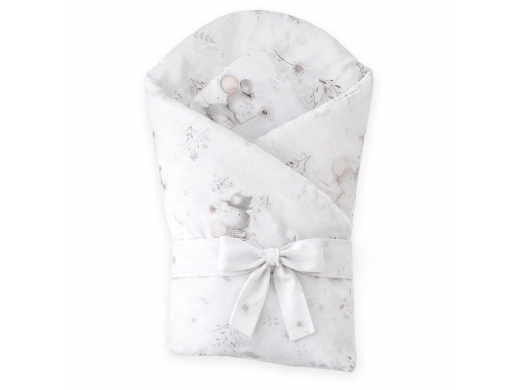 Nádherná detská zavinovačka New Baby Cute Mouse pre bábätká. Zavinovačka je vyrobená z kvalitného a jemného materiálu, ktorý zaručí vášmu bábätku príjemné teplo. Výplň je až 3 cm čo znamená, že zavinovačka je vhodná aj na chladnejšie dni a je dostatočne pevná. Krásny detský motív, polahodí detským očičkám. Zapínanie na suchý zips aj stuhu na zaviazanie na mašľu.Rozmery cca 80x80cm.