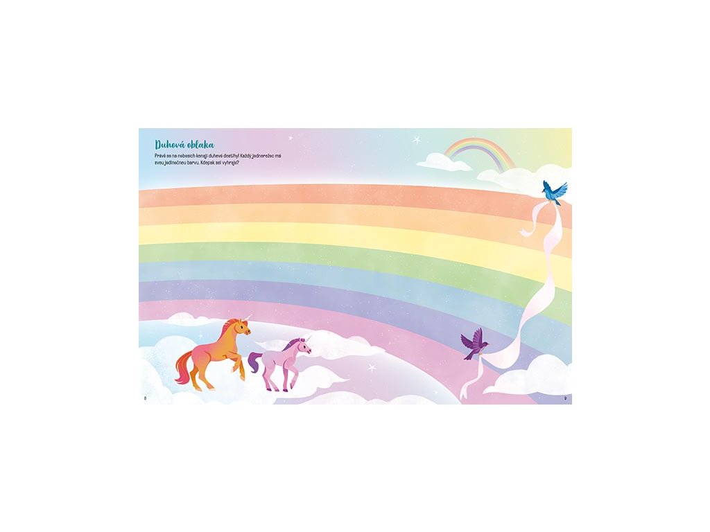 Jednorožci Samolepková knížka Objavte čarovný svet jednorožcov! Tento 16-stranový zošit s 8 stranami nádherných samolepiek je plný kúziel, dúh a roztomilých tvorov. Vytvorte si vlastný jednorožcový príbeh!Dodatočné parametre