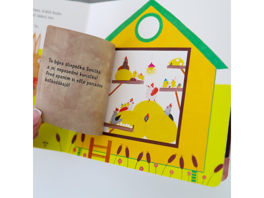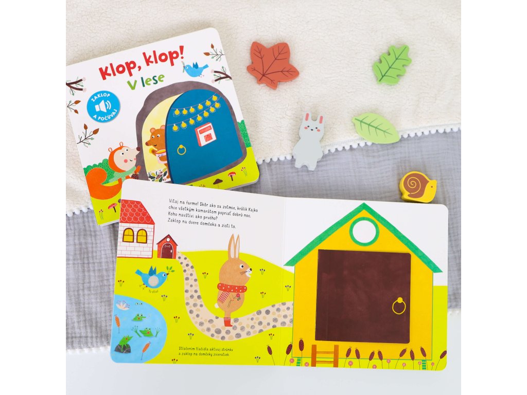 Klop, klop! Na farme Králik Kajko chce všetkým svojim kamarátom na farme zaželať dobrú noc. No kde kto býva? Veselé a nápadité ilustrácie predstavia deťom zvieratá z farmy. Zvuková kniha zaujme malé deti a precvičí ich motorické schopnosti Na každej stránke najprv stlačte tlačidlo pri vtáčikovi, zaklopte na jednotlivé domčeky a spoznajte zvieracích kamarátov z farmy.Dodatočné parametre