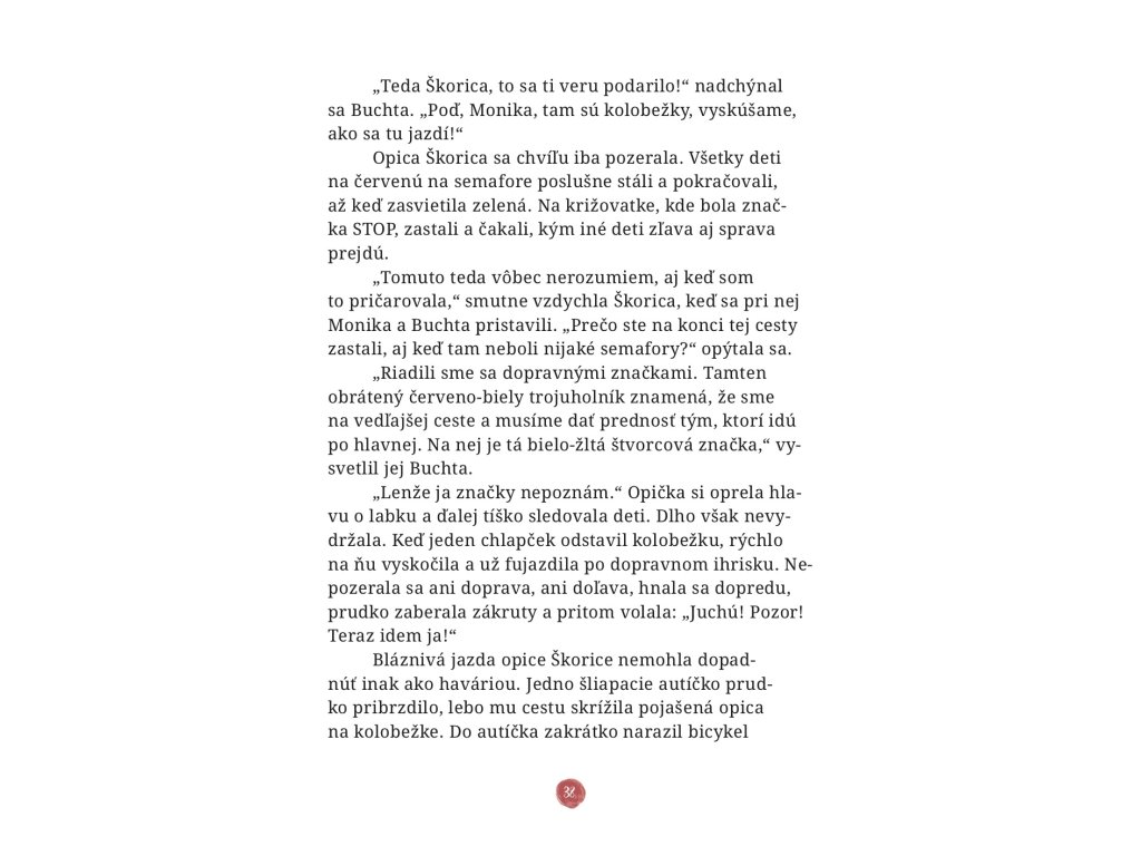 Opica Škorica opäť vystrája Milé deti,poznáte knižku Dobrý deň, opica Škorica? Ak áno a rozprávky o slušnom správaní sa vám páčili, tak vás isto poteší pokračovanie príbehov o nezbednej opičke. Škorica sa rozhodla, že sa medzi svojich kamarátov vráti, aby s nimi zažila nové dobrodružstvá a naučila sa ďalšie pravidlá slušnosti. Ani tentoraz neostane nič dlžná povesti veľkej šibalky a deti budú mať čo robiť, aby ju ustrážili. Naša rozprávková opička totiž rada čaruje a neraz sa jej kúzla končia inak, ako si predstavovala. Prajem vám veľa zábavy.Dodatočné parametre