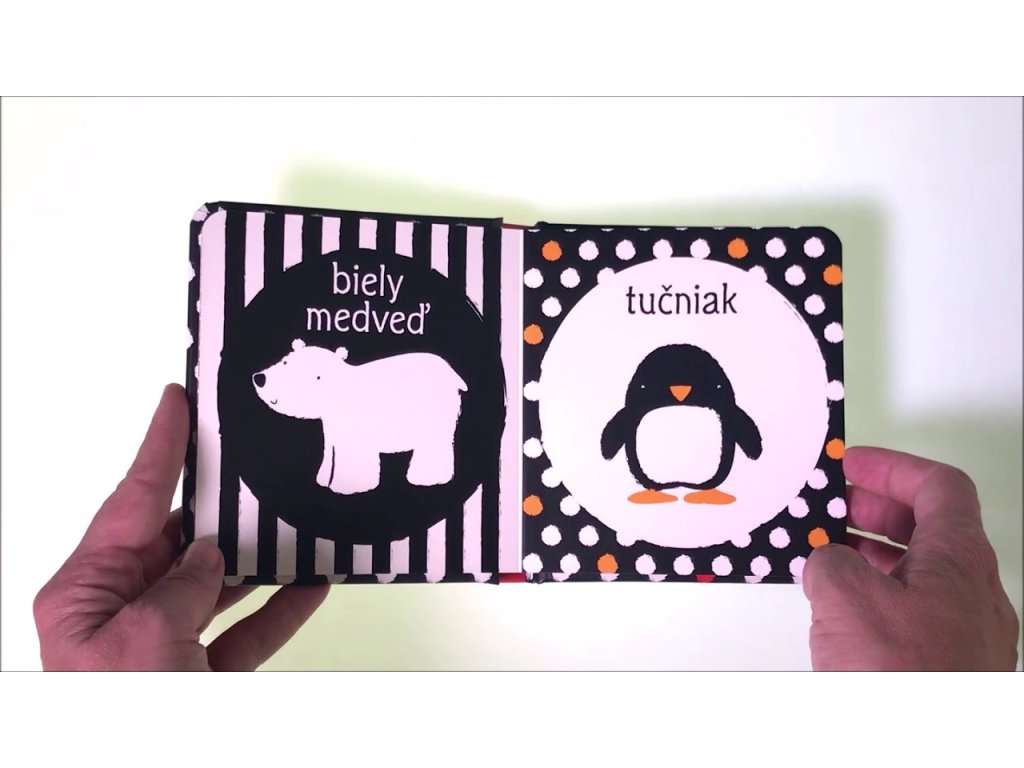 Prvá čiernobiela knižka pre bábätko Zvieratá Ideálna prvá knižka pre vaše bábätko. Veľká je tak akurátdo detských ručičiek, má oblé hrany a vďaka pevným stránkam vydrží aj