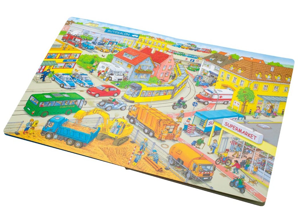 Velká knížka o autech pro malé vypravěče Na cestách, na diaľniciach, na závodnej dráhe, ale aj inde – všade je možné vidieť autá a rôzne ďalšie vozidlá. Niektoré sa len predvádzajú, niektoré pomáhajú na stavbách, alebo dokonca pri zachraňovaní ľudských životov… Popri množstve podrobných obrázkov prináša kniha aj množstvo námetov pre vlastné príbehy malých milovníkov áut. Táto veľkoformátová kniha prináša panoramatické obrazové vhľady do prostredia ciest, stavieb, ale aj iných. Bohato prepracované názorné ilustrácie sú pre deti veľkým lákadlom, bezodnou studnicou inšpirácie a zároveň obrovskou výzvou – množstvo detailov ich priťahuje, podnecuje ich predstavivosť a fantáziu.Malý rozprávač v interakcii s dospelým nielen opisuje, čo vidí na obrázkoch, a hlavne kreatívne a hravo rozpletá a opäť spája nekonečné nitky možných príbehov. Knihy tak veľmi účinne napomáhajú budovaniu slovnej zásoby, komunikačných zručností i logického myslenia. Dieťa cibrí svoj postreh, zrakovú a sluchovú pamäť, a robí tak prvé krôčiky na svojej ceste k rozvoju aktívneho čitateľstva.Dodatočné parametre