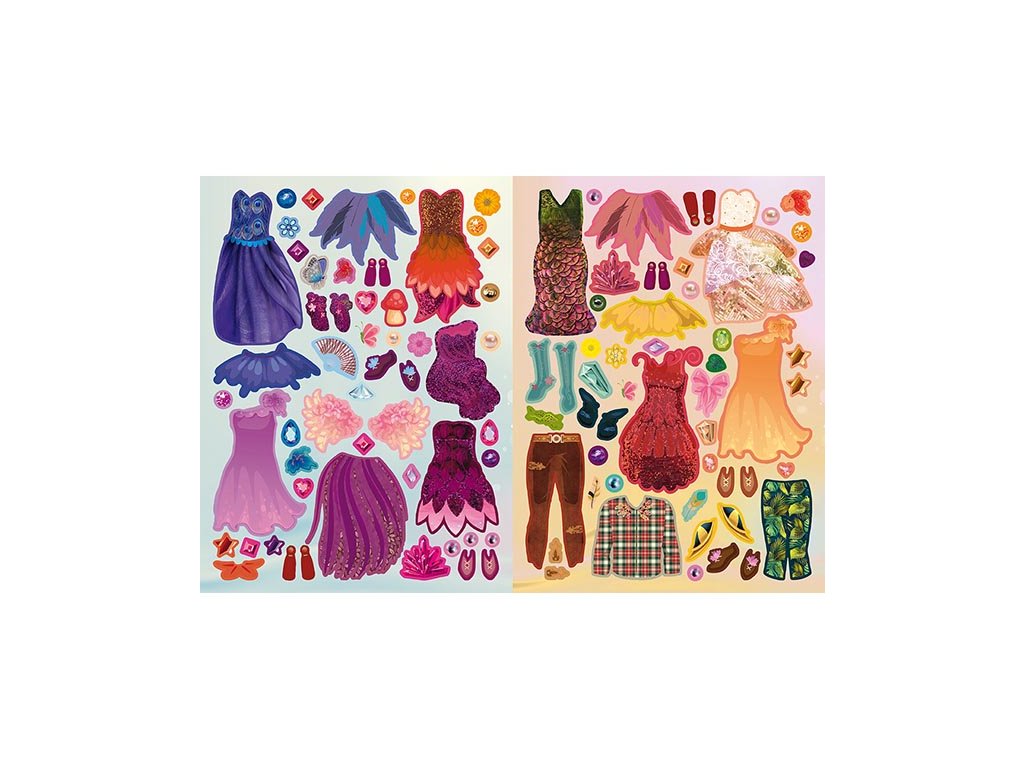 Víly Samolepková móda Štýlové outfity pre víly Vstúp do čarovného sveta víl a obleč ich do tých najkrajších a najkreatívnejších outfitov! Táto samolepková knižka obsahuje 24 strán a viac ako 440 samolepiek, ktoré ti umožnia vytvoriť dokonalý štýl pre tvoje víly. Môžeš si vybrať z rôznych šiat, topánok a doplnkov, aby si postavičky oblečila na každú príležitosť – od magických večierkov po tajomné lesné prechádzky.Dodatočné parametre