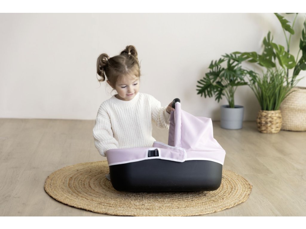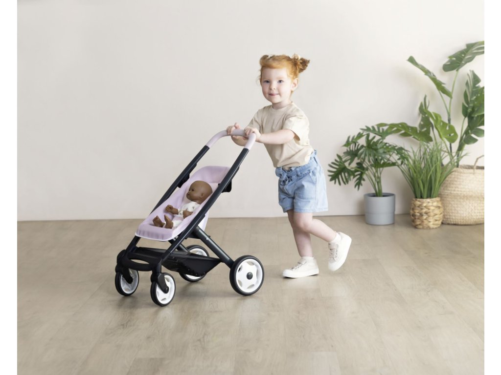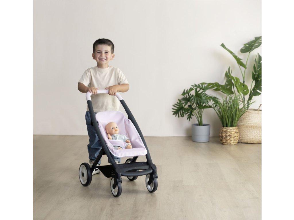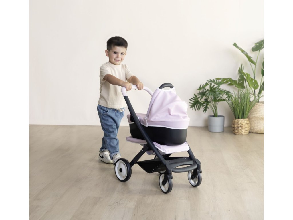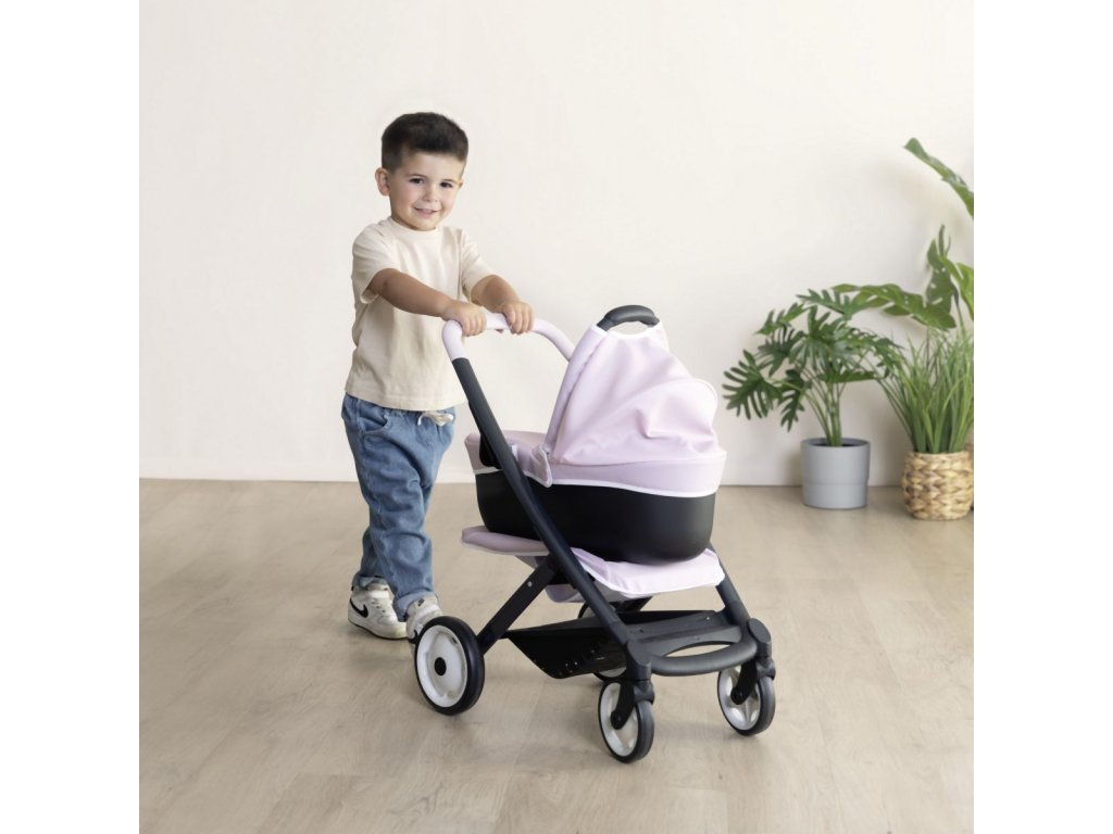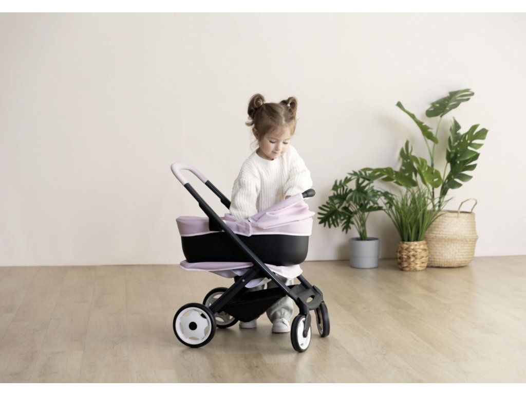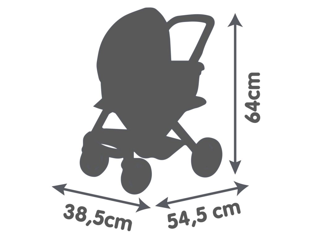 Kombinovaný kočík pre bábiky do veľkosti 42 cm. S odnímateľným košíkom. Nasadením korbičky získate kočík hlboký alebo je možné používať len ako športový kočík. Korbičku je možné použiť aj samostatne. Výška k ergonomickej rukoväti je 64 cm. Predné kolieska otočné, kolieska s protihlukovou vrstvou. Priemer koliesok: 15,5 cm a 12,5 cm.Dodatočné parametre