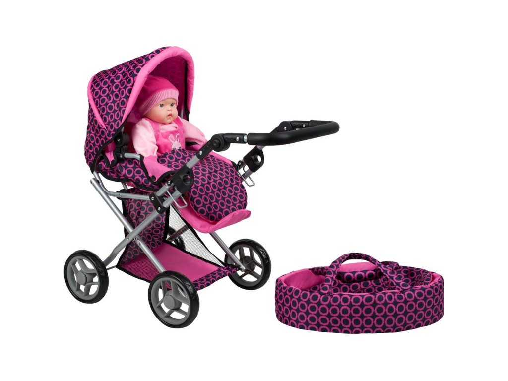 Multifunkčný kočík pre bábiky PlayTo Elsa ružovo-čierny - 33103