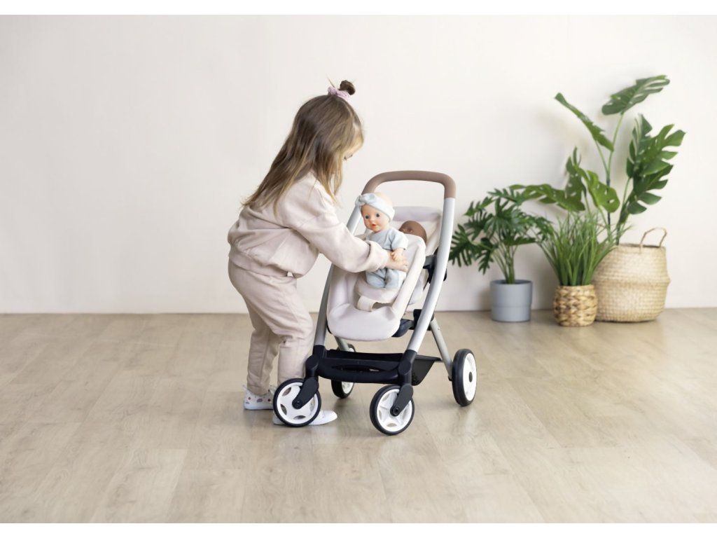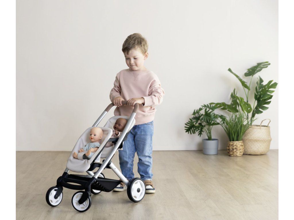 Dvojitý kočík Smoby s odnímateľnými sedadlami a tichými kolieskami. Moderný športový kočík pre bábiky Smoby twin v nezameniteľnom dizajne Quinny. Dobre navrhnutý kočík pre bábiky má skvelé vlastnosti: ergonomická rukoväť pre ľahké uchopenie je obzvlášť pohodlná do malých detských rúk, poťahy sedadiel z robustnej tkaniny zo syntetických vlákien sa ľahko čistia - stačí utrieť vlhkou špongiou. Predné sedadlo je vybavené bezpečnostným pásom. Vhodné pre bábiky do 42 cm. Dodanie bez bábiky. Rozmery produktu (DxŠxV): 54,5 x 38,5 x 64 cm.Dodatočné parametre