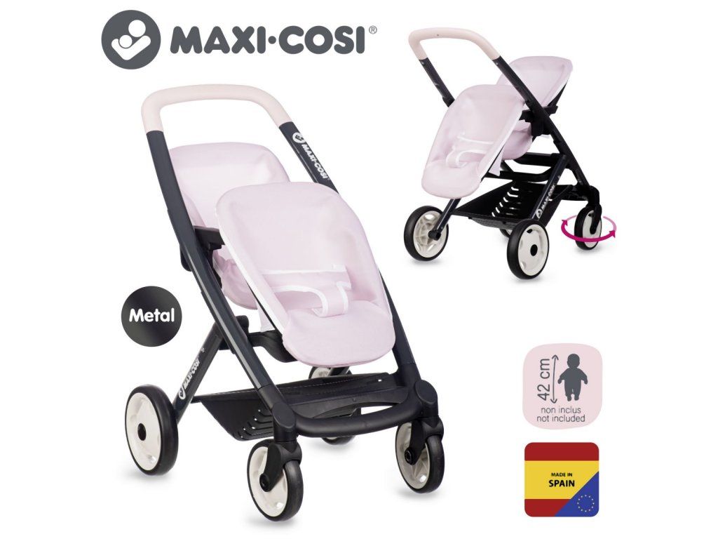 Športový kočík pre bábiky dvojčatá Maxi Cosi svetlo ružový