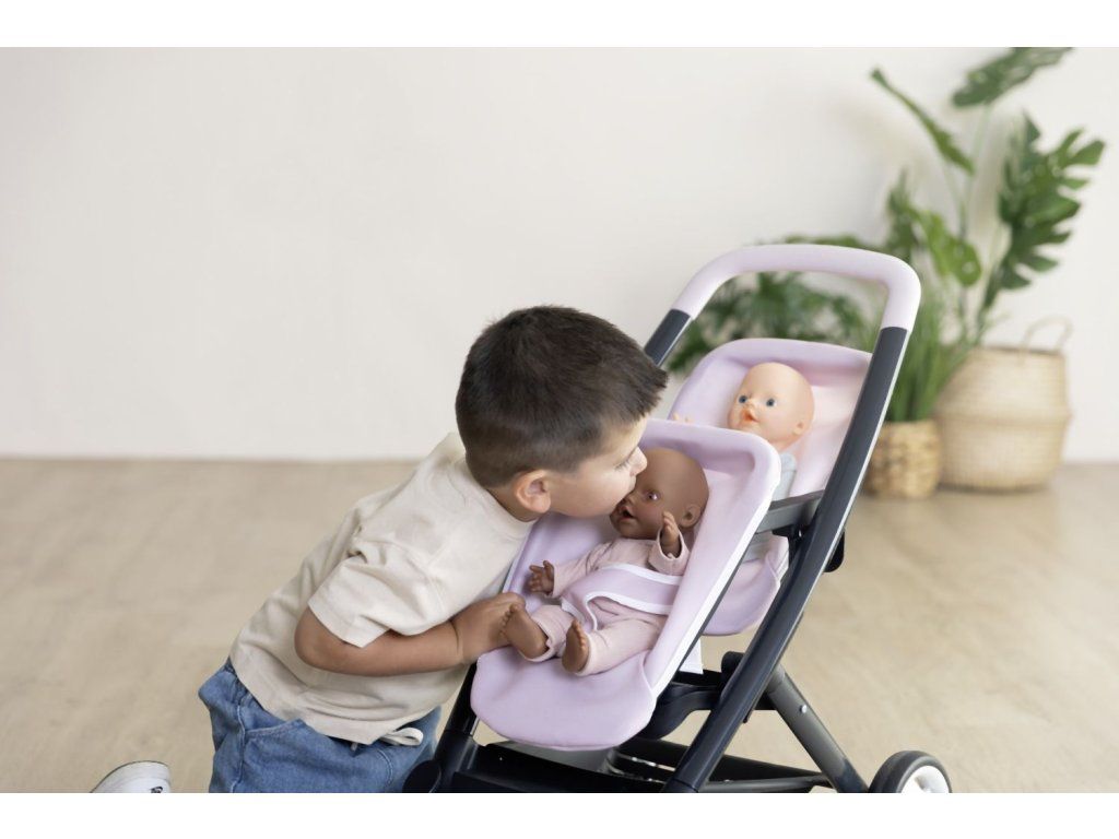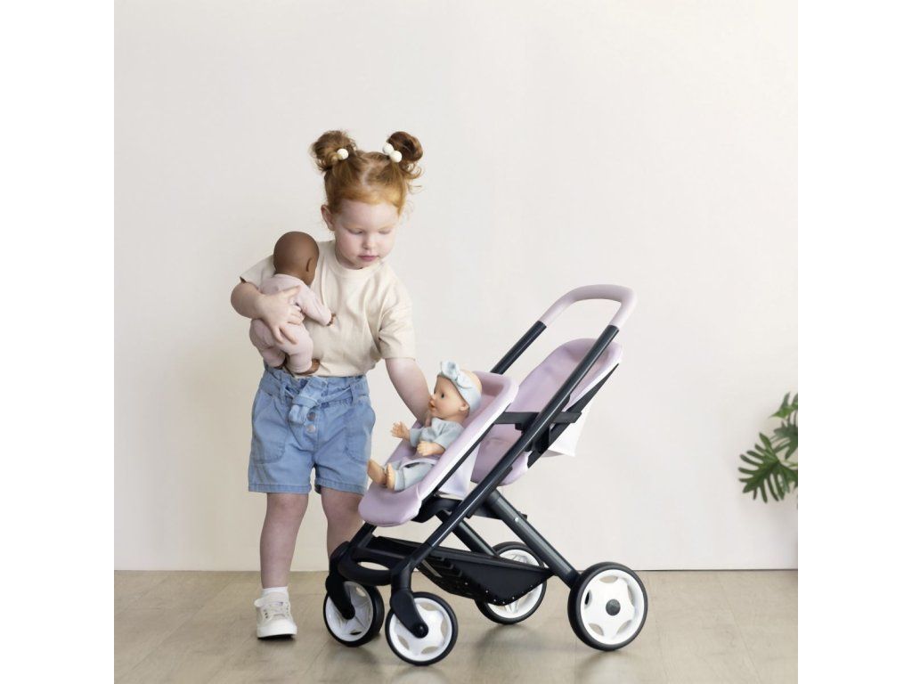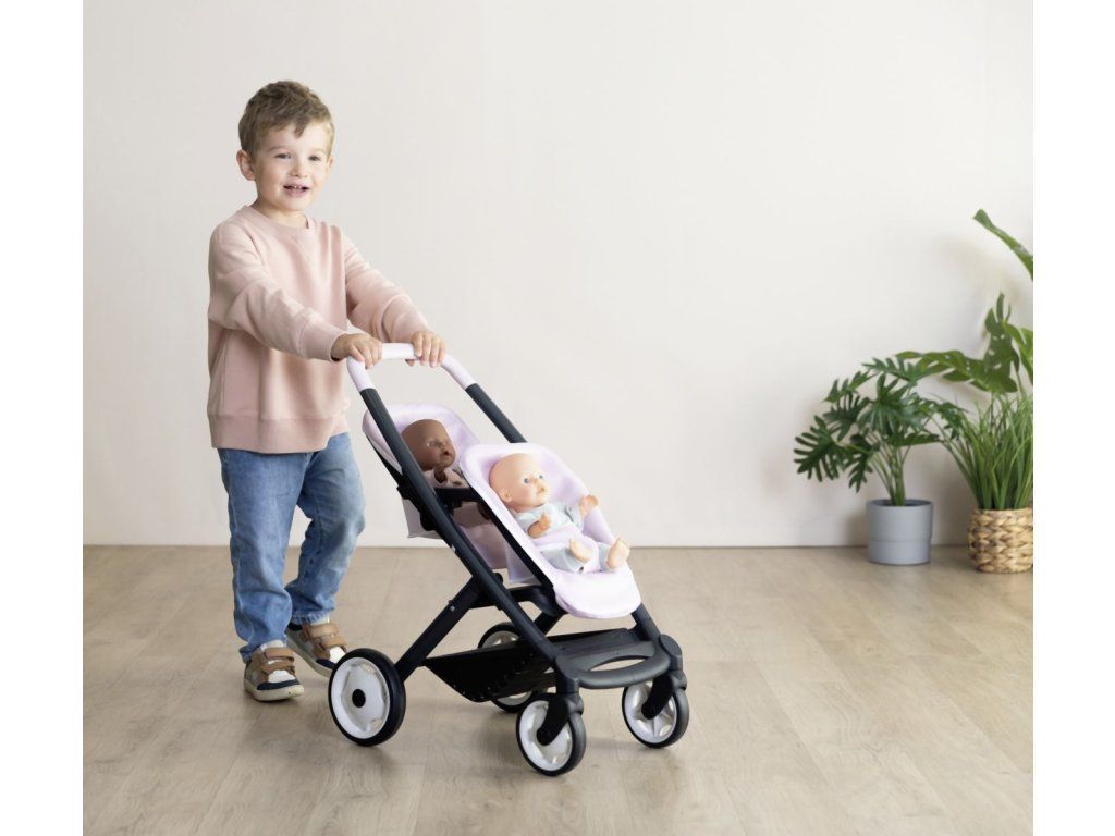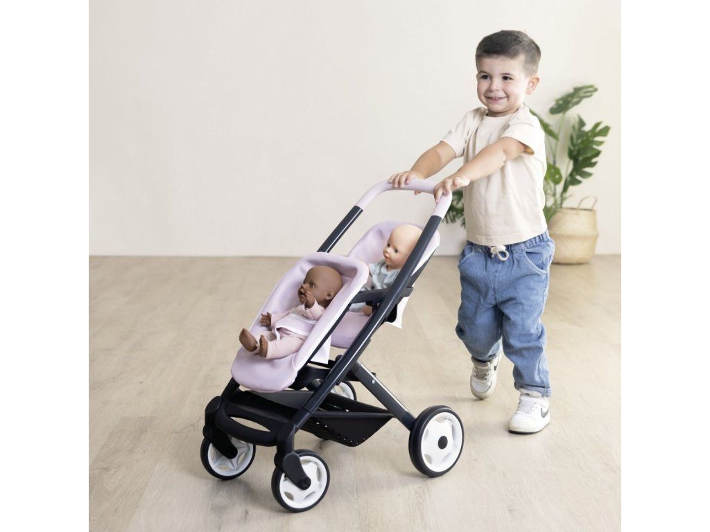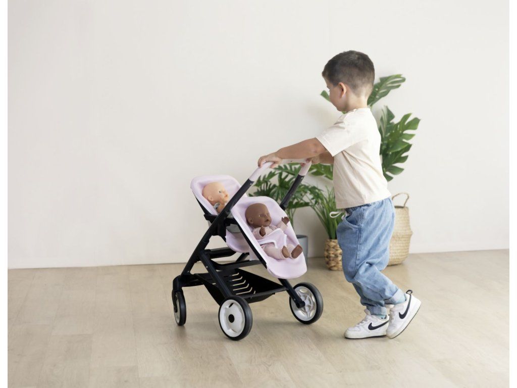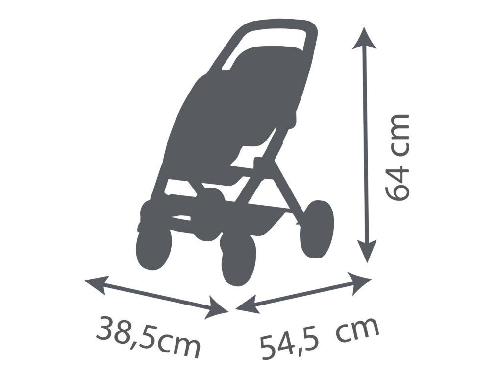 Dvojitý kočík Smoby s odnímateľnými sedadlami a tichými kolieskami. Moderný športový kočík pre bábiky Smoby twin v nezameniteľnom dizajne Quinny. Dobre navrhnutý kočík pre bábiky má skvelé vlastnosti: ergonomická rukoväť pre ľahké uchopenie je obzvlášť pohodlná do malých detských rúk, poťahy sedadiel z robustnej tkaniny zo syntetických vlákien sa ľahko čistia - stačí utrieť vlhkou špongiou. Predné sedadlo je vybavené bezpečnostným pásom. Vhodné pre bábiky do 42 cm. Dodanie bez bábiky. Rozmery produktu (DxŠxV): 54,5 x 38,5 x 64 cm.Dodatočné parametre