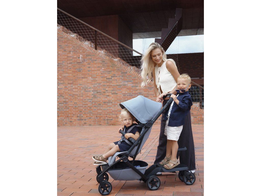 Jeho superľahká konštrukcia zaisťuje pohodlné prenášanie, zatiaľ čo integrovaná opierka nôh nastaviteľná jednou rukou a nový systém pásov poskytujú maximálne pohodlie pre dieťa. Priestranný košík s kapacitou 8 kg pojme všetko potrebné na celý deň a vylepšené kolieska so štvor-kolesovým odpružením zaisťujú plynulú a stabilnú jazdu - či už prechádzate rušnými ulicami alebo spěcháte na letisko.
