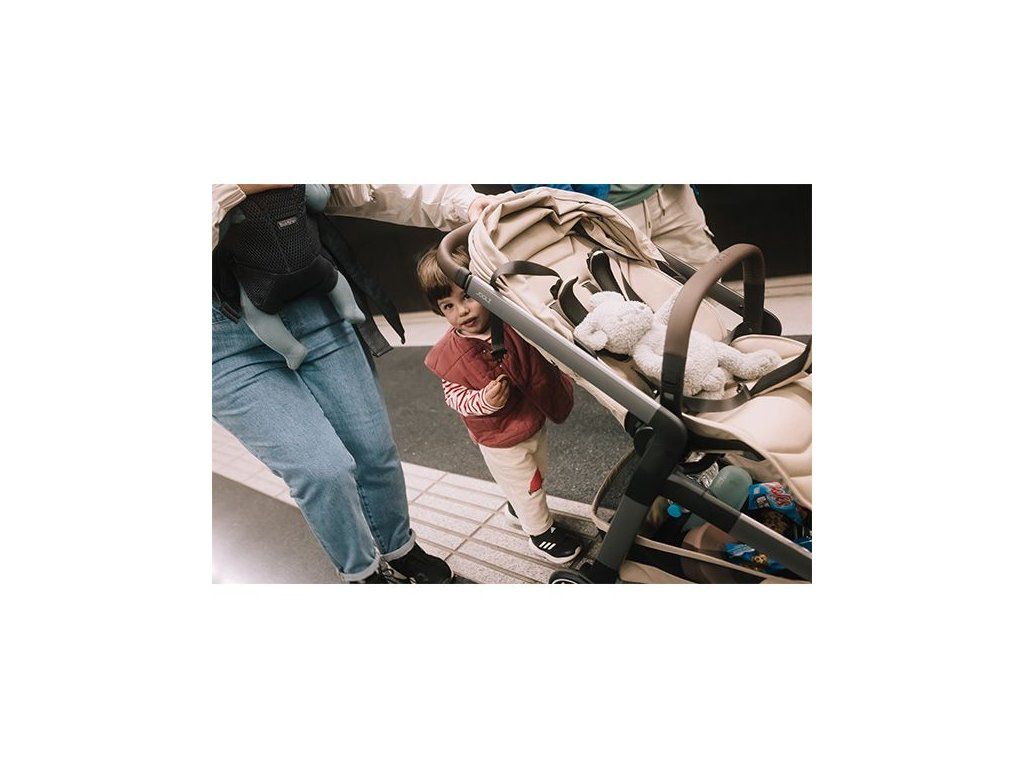 Pri skladaní si môžete vybrať, či potrebujete, aby sedátko smerovalo smerom k vám, alebo von smerom do sveta. Prenosnosť a ľahkosť kočíka je kľúčová, a preto je tu praktický popruh na prenášanie. Môžete si ho prehodiť cez rameno a vyjsť po schodoch s oboma rukami voľnými. Vieme, že hmotnosť s obyčajnými 9 kg oceníte s úsmevom na vašej tvári. Sme jedni z najľahších v segmente kompaktných kočíkov!