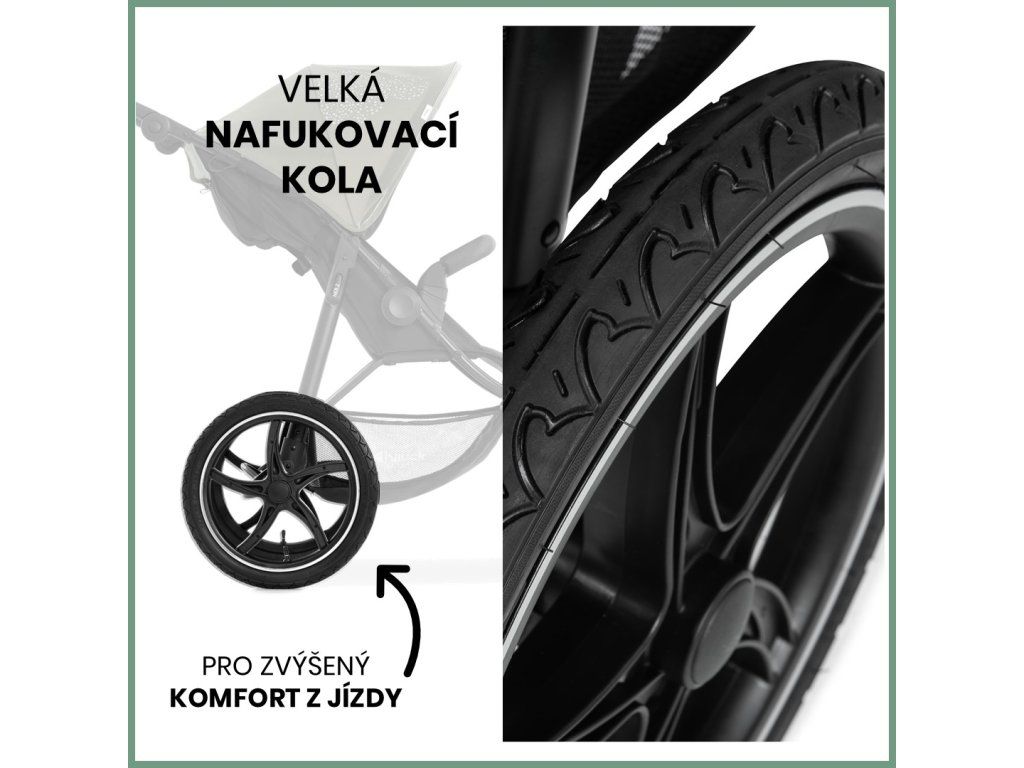 Robustný terénny kočík // Vyrazte von s týmto terénnym fešákom za rodinným dobrodružstvom. Extra veľké nafukovacie kolesá zaručia jazdu s minimom otrasov. Kočík vďaka otočnému kolesu majstrovsky zdolá úzke zákruty.