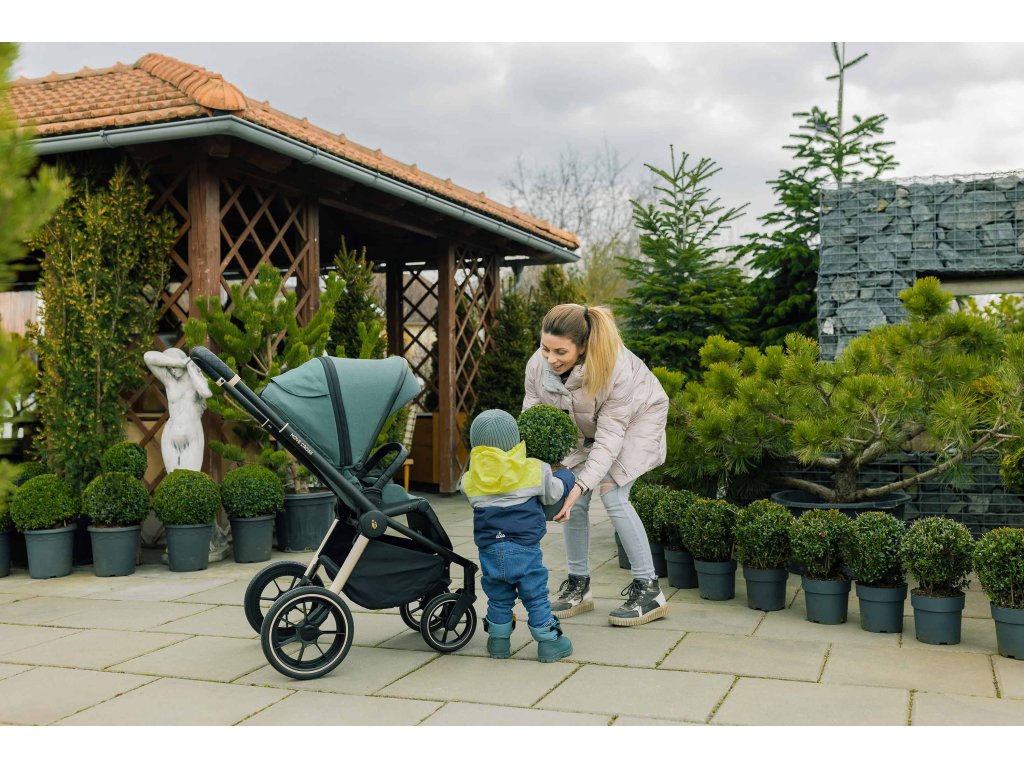 Extra veľké gumové kolesá s mäkkým odpružením hladko prevezú vaše dieťa cez všetky prekážky. Kočík Move Cross je ideálnou voľbou pre aktívne rodiny – zvládne mestské chodníky aj prírodný terén a unesie deti až do 22 kg.