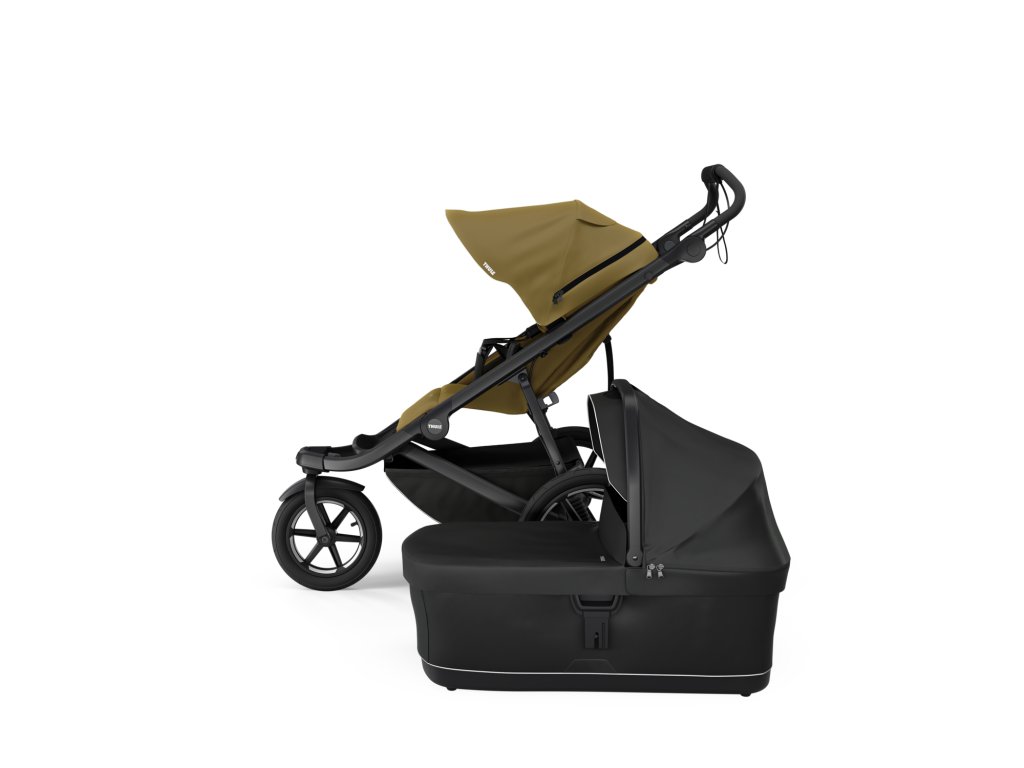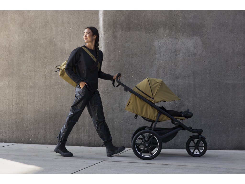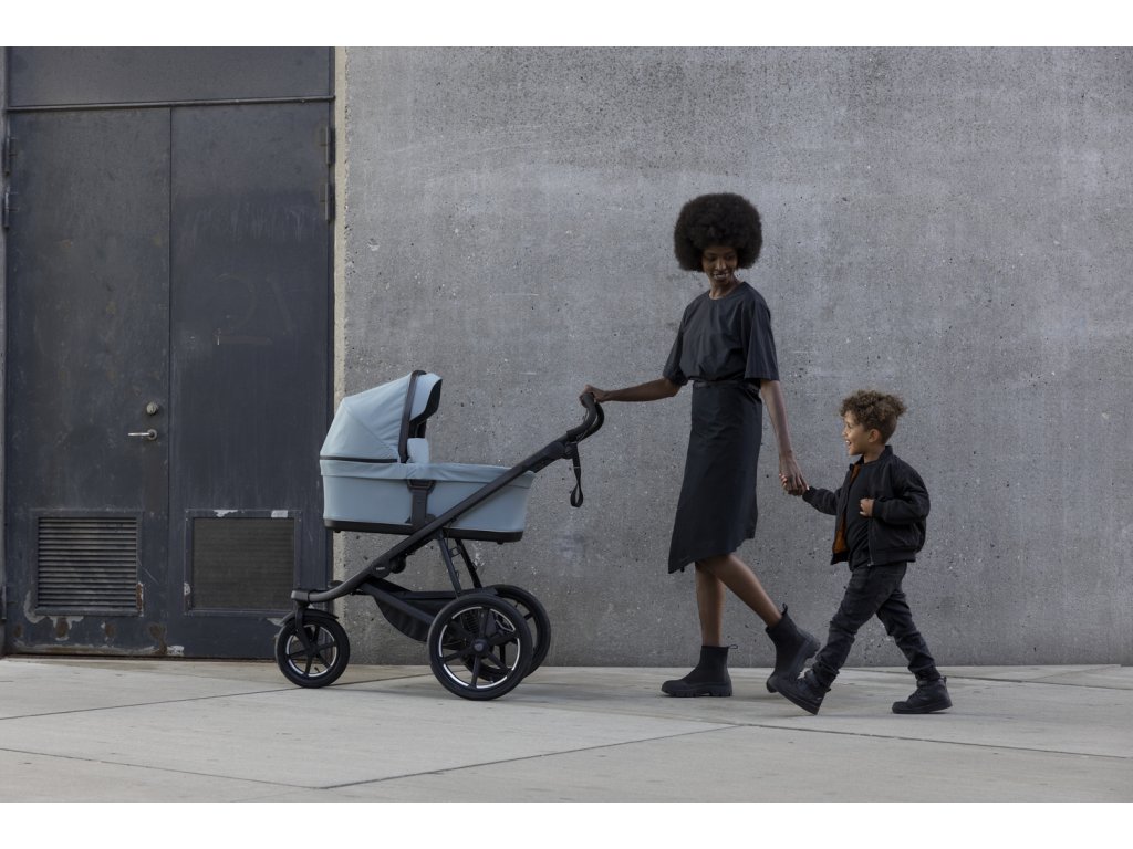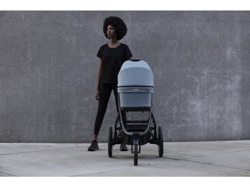 Možno používať od narodenia s korbou Thule alebo adaptérom na detskú autosedačku (predáva sa samostatne). Poťah sedadla a striešky je možné odstrániť pre vytvorenie čistého vzhľadu