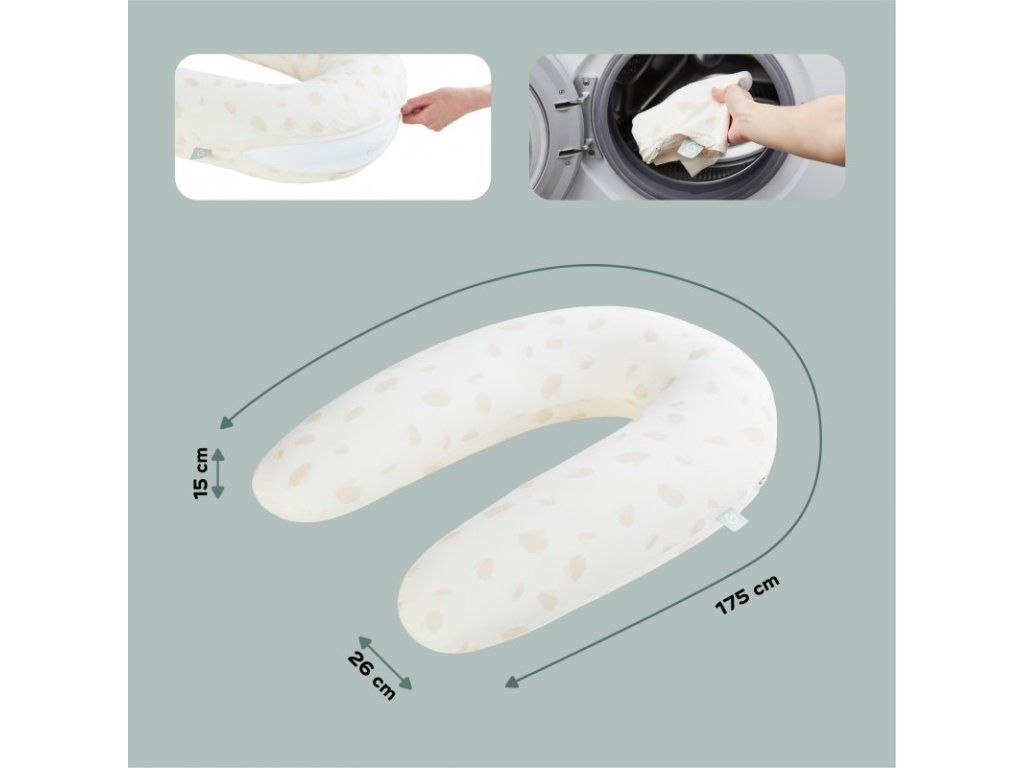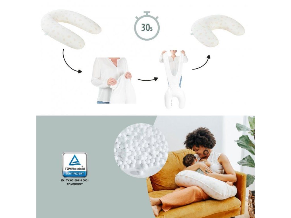 - multifunkčný vankúš 2v1 - veľký, tehotenský vankúš je možné ľahko zmeniť na menší, dojčiaci vankúš