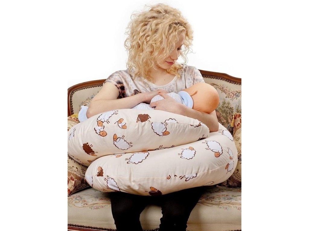 Univerzálny dojčiaci vankúš v tvare C New Baby Ovečky bežový - 28916