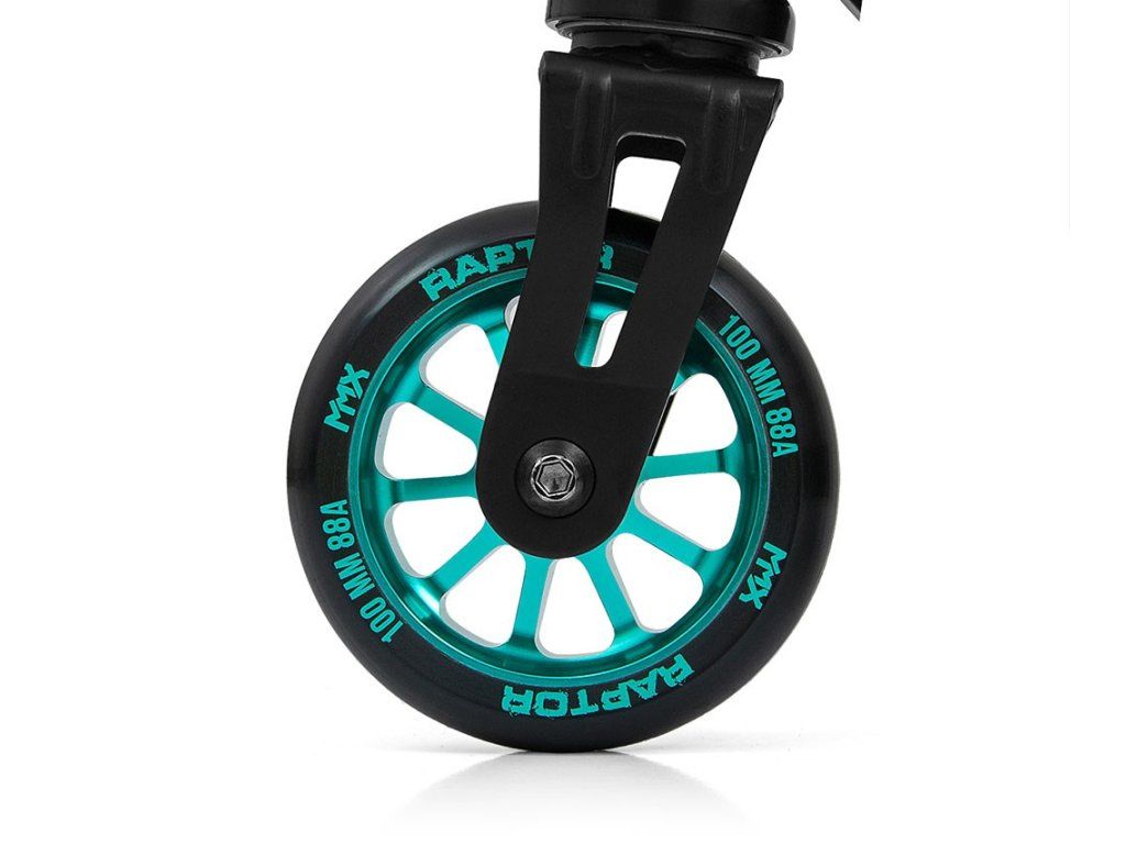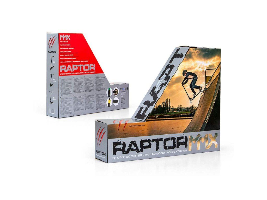 Konštrukcia kolobežky RAPTOR je kombináciou hliníka a ocele, čo sa prejavuje v nízkej hmotnosti pri zodpovedajúcej tuhosti a vynikajúcej odolnosti. Kolobežka RAPTOR je optimálnym vybavením pre začiatočníkov a stredne pokročilých používateľov, ktorí sa s ňou môžu naučiť triky a zabaviť sa.