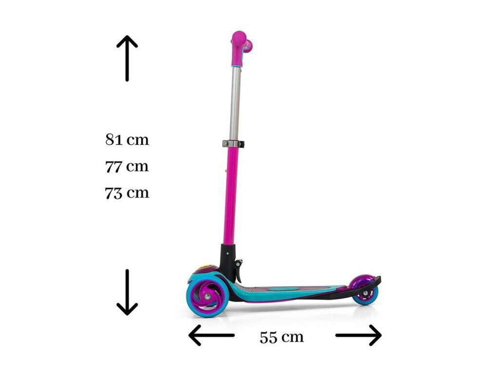 Super štýlová detská kolobežka Milly Mally Magic Scooter. Je ideálnym riešením pre aktívne deti, ktoré sú v neustálom pohybe. Magic Scooter je vyrobená z kvalitných materiálov, ideálna na prechádzky i pre skvelú zábavu. Kovová konštrukcia zaručuje odolnosť výrobku. Kolobežka má navyše brzdu a blatník na zadnom koliesku. Riadenie a krútenie pracuje na princípe rovnováhy tela. Veľkou výhodou kolobežky sú 3 kolesa, ktoré poskytnú stabilitu a bezpečnosť. Deti potešia tiež, svietiace predné kolesá počas jazdy. Magic Scooter je pohodlie a jednoduchosť v modernej forme.Charakteristika: