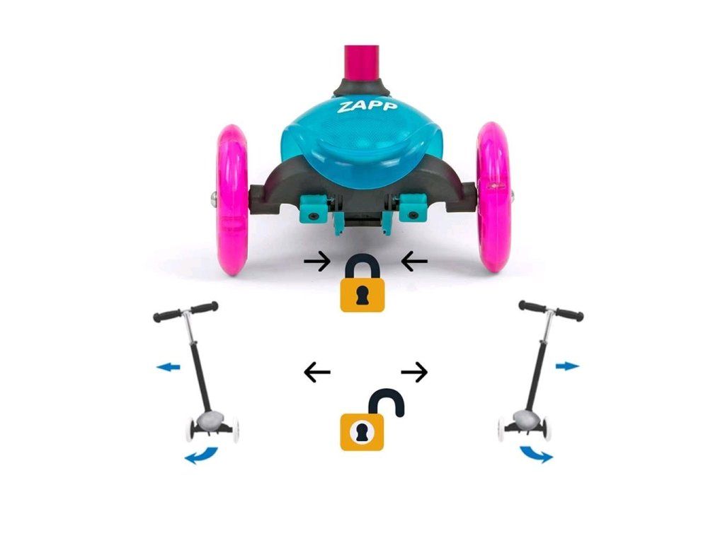 Aby sme vyhoveli potrebám našich malých pretekárov, vytvorili sme kolobežku ZAPP. Je ideálnym riešením pre aktívne deti, ktoré majú rady pohyb. Zapp je vyrobený z kvalitných materiálov, je ideálny na prechádzky alebo vyvádzanie okolo domu. Kovová konštrukcia zaručuje odolnosť výrobku. Kolobežka má navyše brzdu a blatník na zadnom koliesku. Riadenie a zatáčanie pracuje na princípe zmeny rovnováhy tela. Veľkou výhodou kolobežky sú 3 kolesá, ktoré poskytnú stabilitu a bezpečnosť. Deti potešia tiež, svietiace predné kolesá počas jazdy.