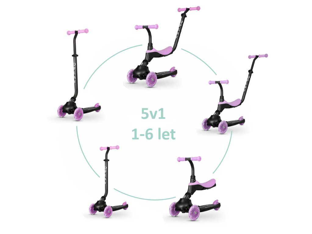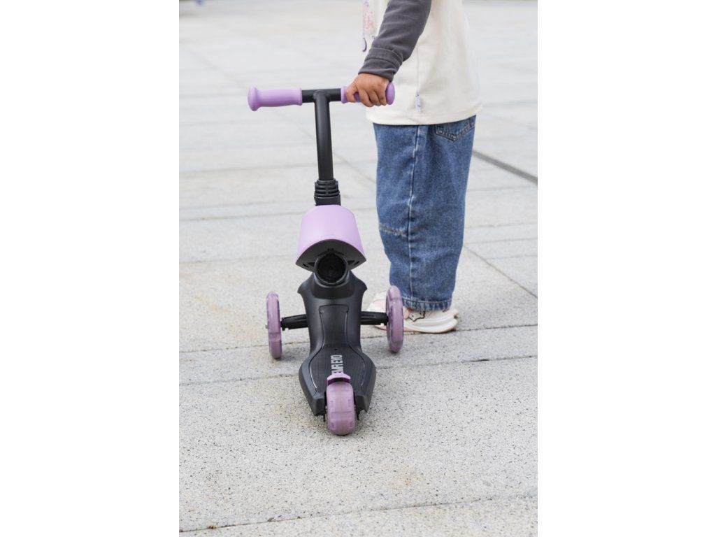 QPLAY Kolobežka / odrážadlo Sema Evo s LED svetlami Violet, vek 1 - 6 rokov, do 50 kg