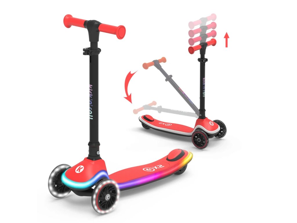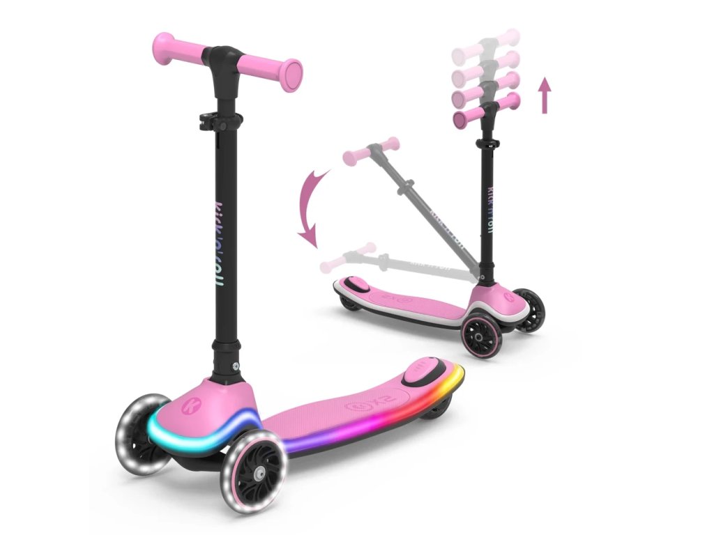 Bezpečná a stabilná detská kolobežka (3–8 rokov) s LED kolieskami, LED osvetlením v nášľapnej doske, nastaviteľnými riadidlami a protišmykovou nášľapnou plochou. Ideálna na každodennú zábavu vonku!Kick'n'Roll X2 detská kolobežka – dokonalá kolobežka pre malých dobrodruhov!