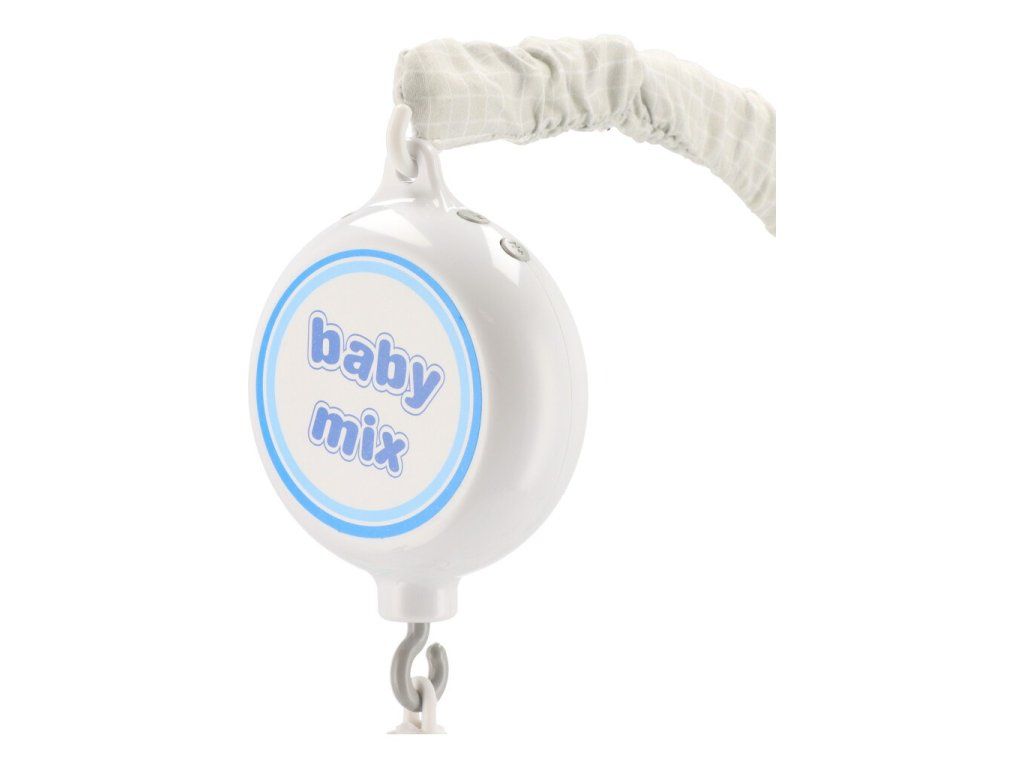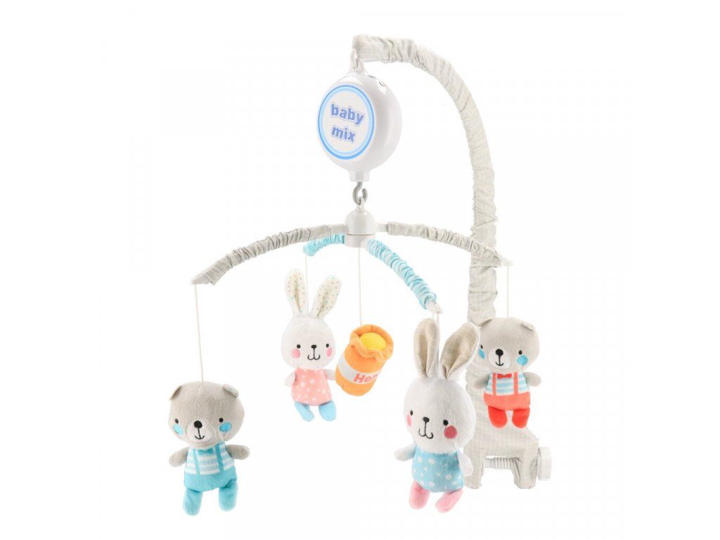 Krásný kolotoč nad postieľku Baby Mix s plyšovými figurkami pomáha rozvíjať zrakovo-pohybovú koordináciu pohybov dieťaťa, upokojuje dieťa pred zaspaním. Po natiahnutí hracieho strojčeka sa figúrky otáčajú a hrá melódie. Určené pre deti, ktoré sa ešte samé nepohybujú. Farebné prevedenie figúrok sa môže líšiť. Výška jednotlivých figúrok cca 12 cm.
