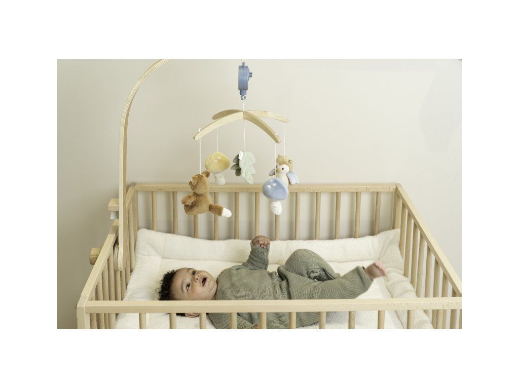 Krásny drevený kolotoč z kolekcie hračiek Little Dutch Forest Friends hrá po natiahnutí uspávanku na upokojenie vášho bábätka pred spaním. Pozornosť dieťaťa upúta päť otáčajúcich sa hračiek v podobe zvieratiek a motívov zo života v lese.