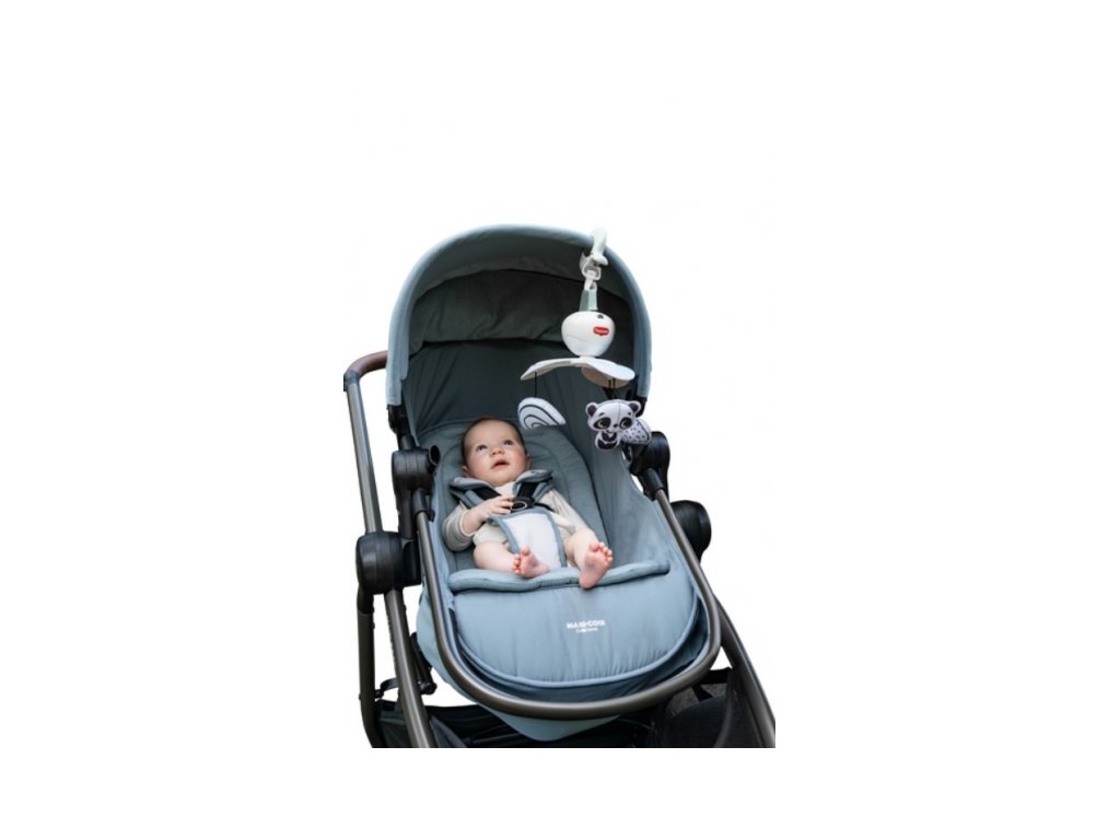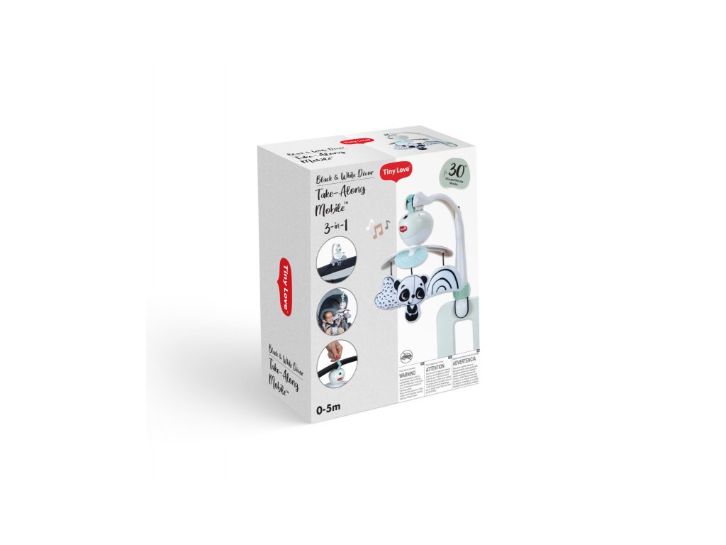 Hudobný kolotoč Tiny Love hrá až 30 minút 5 rôznych melódií. Pozornosť dieťaťa upútajú otáčajúce sa hračky vo vysoko kontrastnom čiernobielom prevedení. Kolotoč ponúka tri rôzne spôsoby uchytenia: univerzálny úchyt je vhodný napr. na cestovnú postieľku, klip je ideálny na uchytenie na kočík, opasok so suchým zipsom umožňuje uchytenie na autosedačku. Kolotoč tak vaše dieťa zabaví kdekoľvek na cestách.