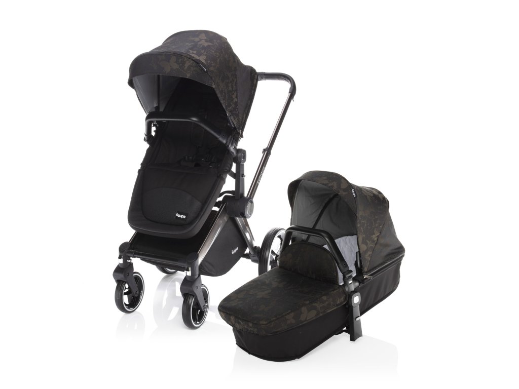 Podvozok ponúkame v štyroch farebných kombináciách. K podvozku si môžete vybrať farebný set podľa svojho vkusu. Set obsahuje striešku so zabudovanou slnečnou clonou pre korbu i športové sedenie, nánožník hlbokej korby, polstrovanie bezpečnostných pásov športového sedenie, nánožník pre športové sedenie.