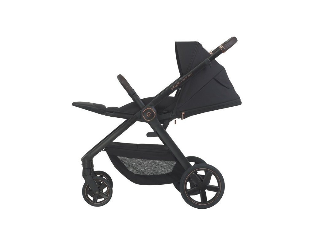 Športovú verziu kočíka Espiro Only môžete namontovať na rám presne tak, ako to vaše dieťa preferuje - čelom alebo zadom k smeru jazdy. Má opierku s niekoľkými stupňami nastavenia polohy. Môžete ju sklopiť do úplne vodorovnej polohy, keď vaše dieťa bude chcieť zdriemnuť, alebo ju zdvihnúť, aby zvedavé dieťa mohlo sedieť a pozorovať svet. Systém nastavenia sa týka aj podnožky. Vďaka tomu prispôsobíte konštrukciu kočíka výške dieťaťa.