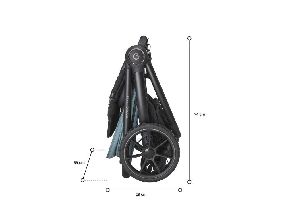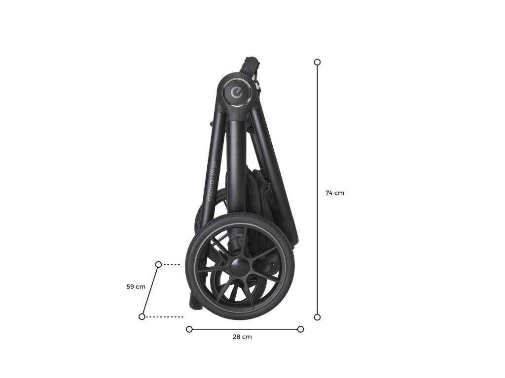 Korba Espiro Yoga je skladacia do plochej podoby. Ľahko sa zmestí do kufra a nezaberie v ňom veľa miesta – ideálny kočík aj pre cestujúcich rodičov.