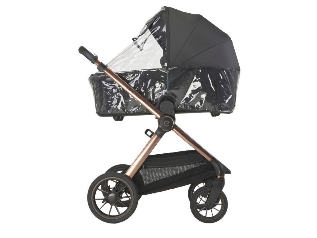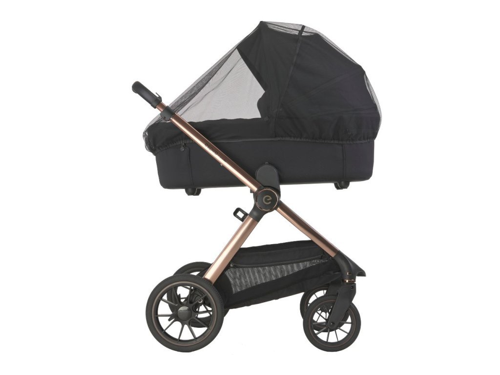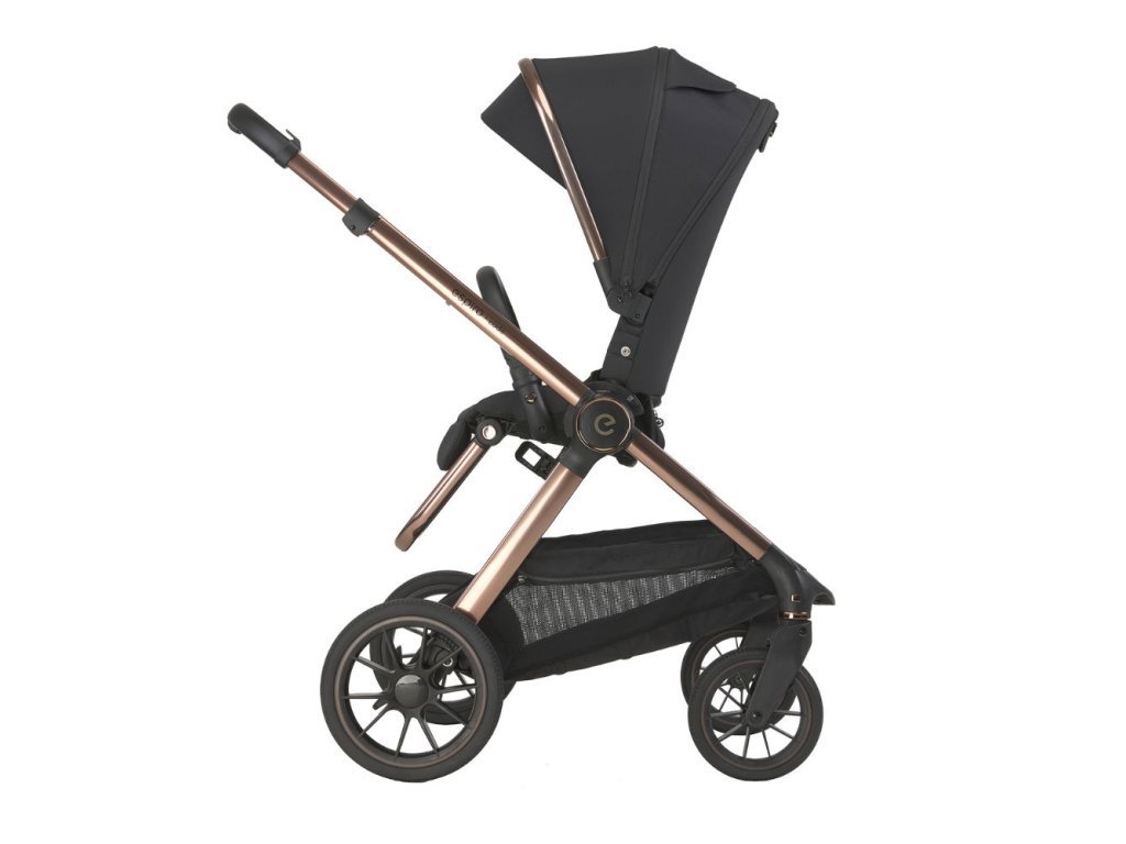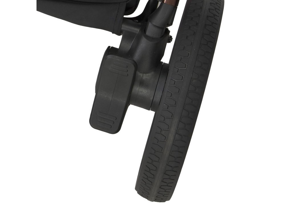 Pre každý terén, vďaka vynikajúcemu odpruženiu [na rodičovské vzostupy a pády]. Stabilizátor otrasov vaničky [na všetky nerovnosti rodičovstva]. B Gelové kolesá vyrobené z materiálu EVA, pokryté vrstvou gumy, ktorá zlepšuje priľnavosť. Inteligentná brzda, ktorá nepoškodí obuv. Priestranný košík s prídavnou veľkou taškou typu shopper a uzatvárateľnou kapsou [na všetky kamene a klacky, ktoré staršie dieťa nazbiera a prinesie domov].