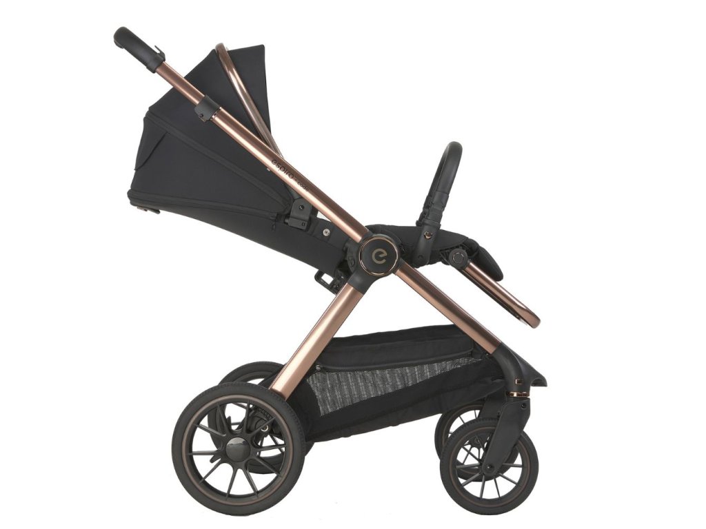 Pre každý terén, vďaka vynikajúcemu odpruženiu [na rodičovské vzostupy a pády]. Stabilizátor otrasov vaničky [na všetky nerovnosti rodičovstva]. B Gelové kolesá vyrobené z materiálu EVA, pokryté vrstvou gumy, ktorá zlepšuje priľnavosť. Inteligentná brzda, ktorá nepoškodí obuv. Priestranný košík s prídavnou veľkou taškou typu shopper a uzatvárateľnou kapsou [na všetky kamene a klacky, ktoré staršie dieťa nazbiera a prinesie domov].