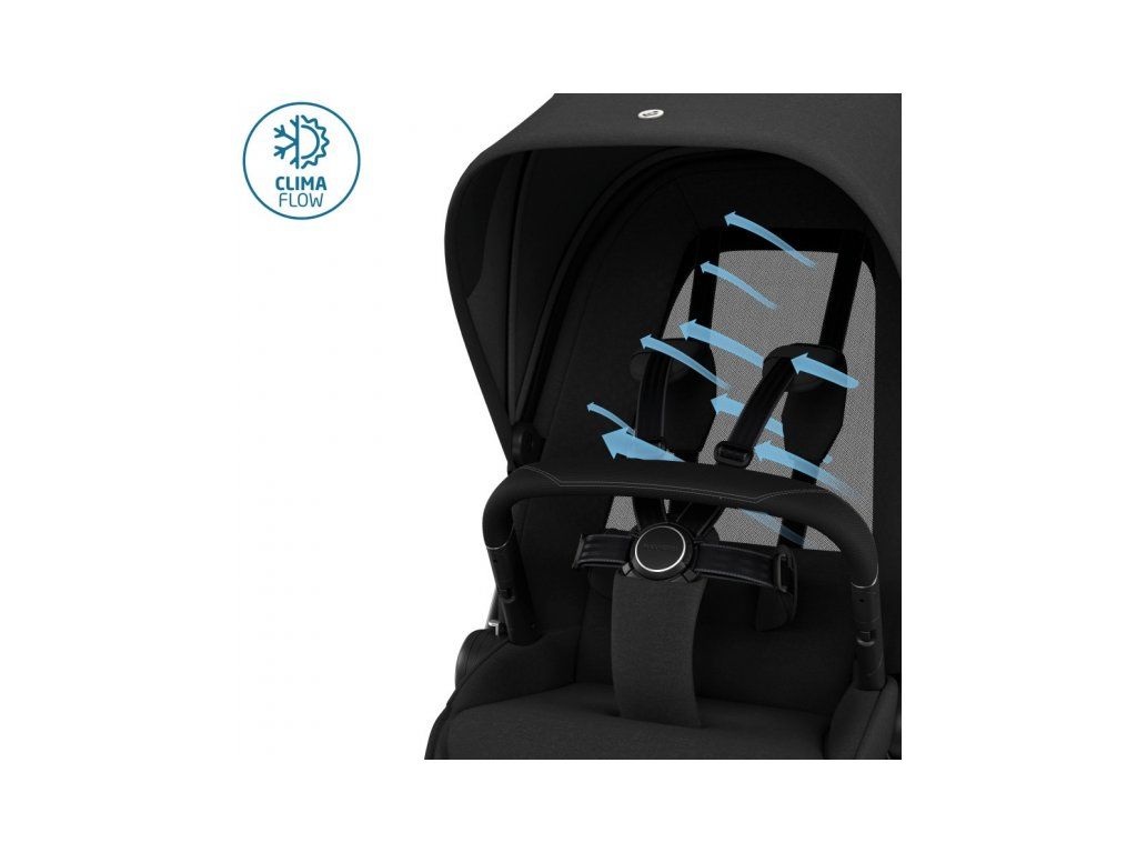 Športový sedák je vybavený odnímateľnou ultra polstrovanou podložkou z pamäťovej peny pre maximálne pohodlie dieťaťa pri sedení aj spaní. Počas horúcich letných dní je možné podložku úplne vybrať, opierka sedadla zo sieťoviny ClimaFlow maximalizuje ventiláciu a pomáha udržovať dieťa v tepelnom komforte. Sedák ponúka tri polohy opierky chrbta vrátane rovnej polohy pre prirodzené spanie a pohodlnú nastaviteľnú opierku nôh. 5-bodové bezpečnostné pásy s magnetickou prackou uľahčujú pútanie dieťaťa.