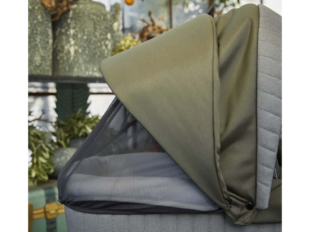 Vďaka bohatému polstrovaniu sa vaše dieťa bude v hlbokom sedadle cítiť pohodlne a bezpečne. V letných mesiacoch oceníte dômyselný systém ventilácie, ktorý zabezpečuje, že teplota v sedadle zostane aj v horúčavách na príjemnej úrovni. Hojdacia základňa v kombinácii s mäkkým matracom pomáha dieťaťu rýchlo zaspať.