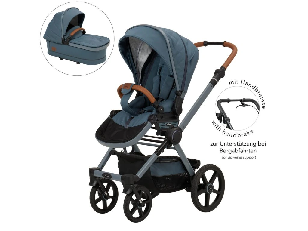 Kočík T2 Offroad – robustný, komfortný a pripravený do každého terénu S kočíkom T2 Offroad ste flexibilní na akomkoľvek povrchu – v meste, v parku, na lesných cestách aj na štrku. Vďaka veľkým kolesám (23,4 cm vpredu / 32 cm vzadu) a pevným offroadovým ráfikom si užijete mimoriadne pokojnú a stabilnú jazdu, a to aj na nerovnom teréne. Vysoko kvalitné pneumatiky Solight Ecco so vzduchovými komorami v kombinácii s nastaviteľným odpružením poskytujú optimálny jazdný komfort a chránia vaše dieťa pred otrasmi – či už idete po kockách, lesných alebo poľných cestách. Štýlová športová sedačka je veľmi ľahká a ponúka viac polôh nastavenia – vrátane plne ležiacej pozície. Vaše dieťa tak môže pohodlne sedieť, odpočívať alebo spať. Sedacia jednotka je otočná a spoločne s podvozkom ju je možné zložiť do mimoriadne kompaktných rozmerov (75 × 58 × 37 cm). Dizajnovým bonusom je farebné zladenie podvozku a látky pri všetkých piatich prevedeniach. Farebne sú zladené aj pásy, čo vytvára dokonale harmonický vzhľad. V kombinácii s hlbokou korbou Babywanne Premium môžete kočík T2 Offroad využívať už od narodenia. Stane sa tak spoľahlivým parťákom, ktorý vás s dieťaťom bude sprevádzať prvými rokmi – nech už vás cesty zavedú kamkoľvek. Výhody s kočíkom T2 Offroad: - Extra veľké kolesá (23,4 cm vpredu / 32 cm vzadu) pre maximálnu terénnu priechodnosť - Robustné offroadové ráfiky pre les, štrk aj poľné cesty - Komfortné pneumatiky Solight Ecco so vzduchovými komorami a nastaviteľným odpružením - Štýlová a ľahká športová sedačka s plnou polohou v ľahu - Exkluzívny dizajn - farba podvozku a pásov perfektne ladí s látkou - Babywanne Premium v cene - ideálny pre prvé mesiace Babywanne Premium – pohodlie od prvého dňa S hlbokou korbou Premium sa T2 Offroad stáva plnohodnotným kombinovaným kočíkom na prvých 6 mesiacov. - Veľmi ľahká a ergonomicky polstrovaná - Nastaviteľná ventilačná zóna a okienko pre lepšiu cirkuláciu vzduchu - Súčasťou je nánožník a matrac Softline s klíma úpravou - Praktické skladanie pre ľahké skladovanie a prepravu - Integrovaná možnosť zvýšenej polohy chrbta pre pohodlnejšiu polohu bábätka S kočíkom T2 Offroad ste vždy mobilní, v bezpečí a štýloví, a to v akomkoľvek teréne. Technické údaje Rozmery: - Vonkajšie rozmery rozloženého kočíka: 103 × 58,5 × 115 cm - Zložený podvozok: 75 × 58,5 × 37,5 cm - Zložená sedacia jednotka: 72 × 40 × 24,5 cm - Vnútorná plocha športovej časti: 94 × 34 cm - Dĺžka opierky nôh: 28 cm - Dĺžka opierky chrbta: 52 cm - Predné kolesá: Ø 21,4 cm - Zadné kolesá: Ø 27,6 cm Babywanne Premium: - Vnútorné rozmery: 80 × 34 × 22 cm Hmotnosti: - Podvozok: 10,5 kg - Sedacia jednotka: 4,7 kg - Babywanne Premium: 5,1 kgDodatočné parametre