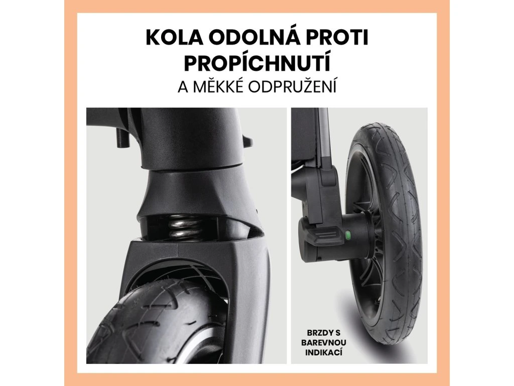 KOLESÁ ODOLNÉ PROTI PREPICHNUTIU A OBZVLÁŠŤ MÄKKÉ ODPRUŽENIE // Do mesta či do prírody: s robustným hliníkovým rámom, veľkými GUMOVÝMI kolesami odolnými proti prepichnutiu a odpružením 4x4, ste dobre vybavení do každého terénu. Ešte väčšie pohodlie a bezpečnosť vám ponúka brzdový systém s farebným indikátorom.