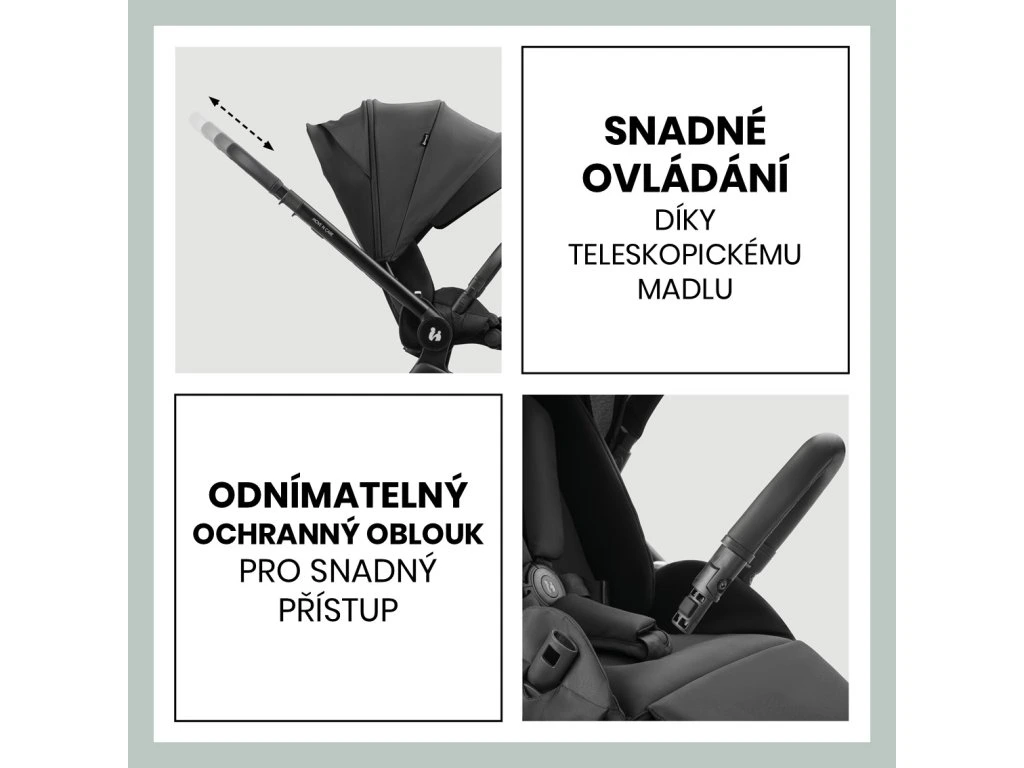 ĽAHKÉ OVLÁDANIE // Vďaka výškovo nastaviteľnej teleskopickej rukoväti sa kočík MOVE N CARE ľahko ovláda a zároveň vám poskytuje optimálny priestor na nohy. Odnímateľný ochranný oblúk umožňuje vám aj vášmu dieťaťu ľahký prístup do kočíka.