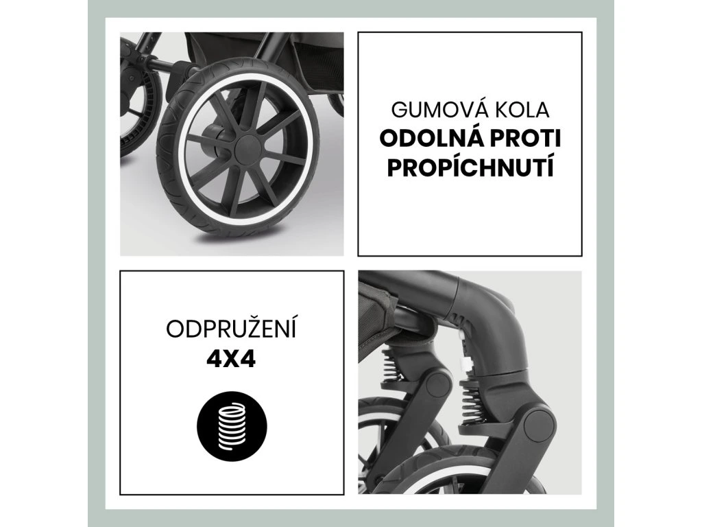 Odolné kolesá s odpružením // Do mesta aj do prírody: vďaka robustnému hliníkovému rámu, veľkým gumovým kolesám odolným proti prepichnutiu a odpruženiu 4x4 ste dobre vybavení do každého terénu a váš malý bude mať pohodlie aj na hrboľatých cestách.