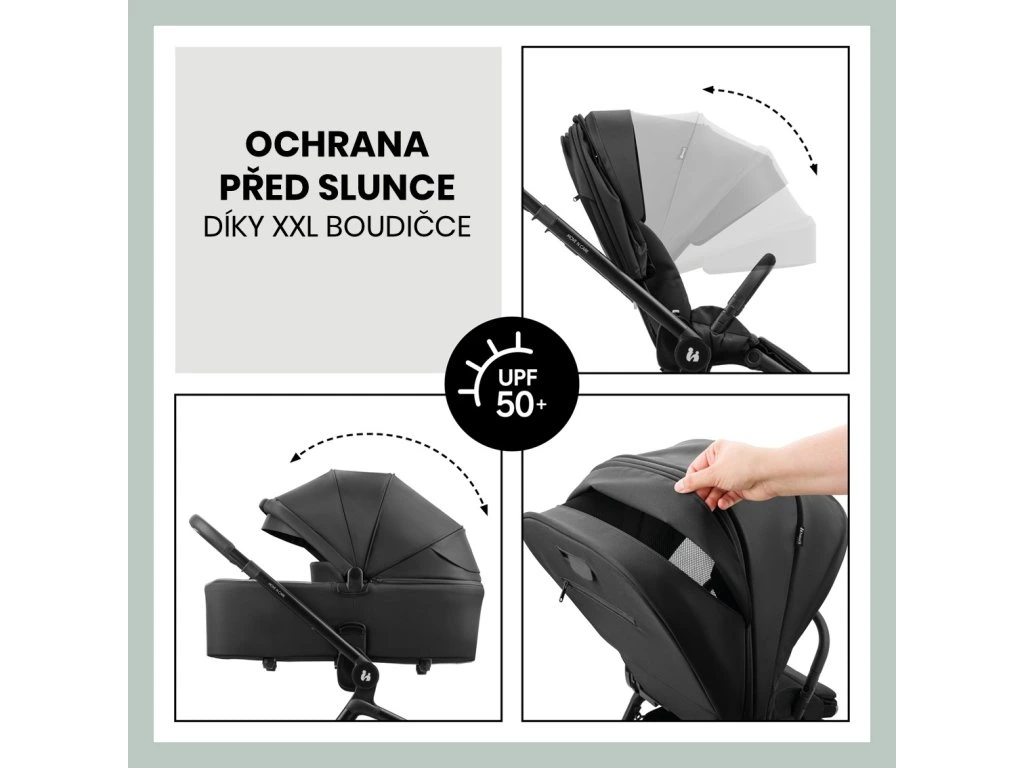 XL STRIEŠKA S MAXIMÁLNOU OCHRANOU PROTI SLNKU // Sedadlo aj vanička sú vybavené priestrannou strieškou s ochranou proti UV žiareniu 50+ a sieťovaným okienkom. Vaše dieťatko je tak optimálne chránené a môže si neustále užívať dostatočný prísun čerstvého vzduchu.