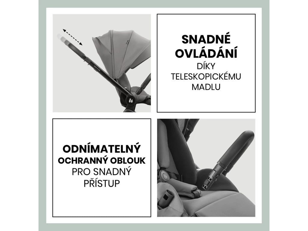 ĽAHKÉ OVLÁDANIE // Vďaka výškovo nastaviteľnej teleskopickej rukoväti sa kočík MOVE N CARE ľahko ovláda a zároveň vám poskytuje optimálny priestor na nohy. Odnímateľný ochranný oblúk umožňuje vám aj vášmu dieťaťu ľahký prístup do kočíka.