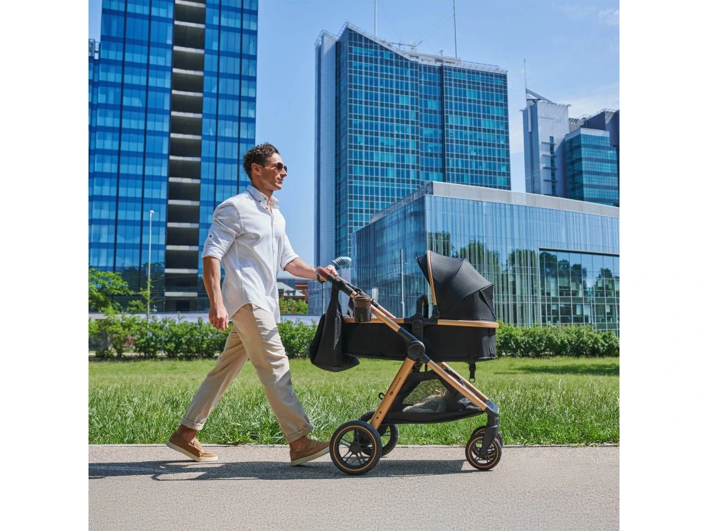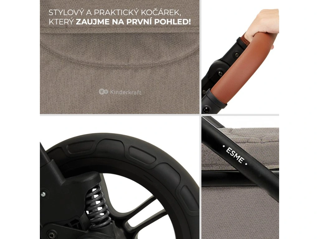Kočík 3 v 1 ESME má veľkú striešku s okienkom pre kontakt s dieťaťom, ktorá chráni pred vetrom aj slnkom. Pod sedadlom sa nachádza priestranný košík s nosnosťou až 3 kg – ideálny na nákupy alebo nevyhnutné doplnky. O bezpečnosť dieťaťa sa starajú nastaviteľné 5-bodové pásy s mäkkými polstrami a odnímateľné madlo, ktoré možno otvoriť z oboch strán.
