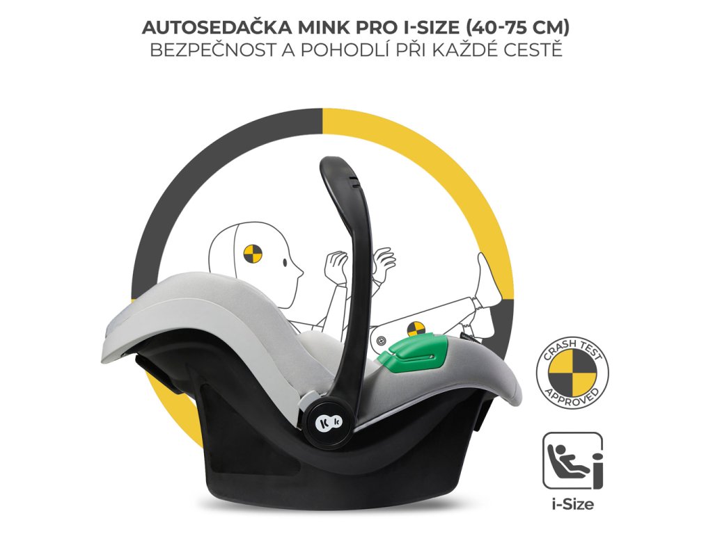 - Autosedačka MINK PRO i-Size (40 – 75 cm) a adaptéry sú súčasťou balenia.