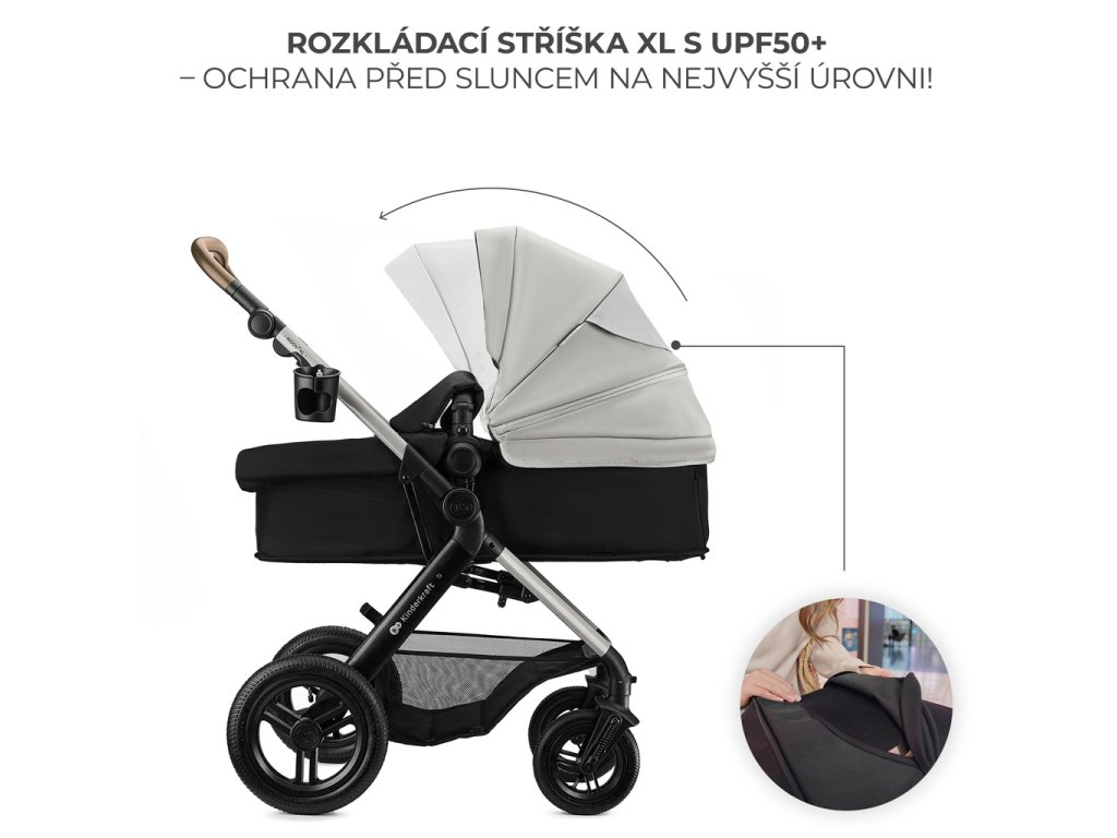 - Rozšíriteľná strieška s filtrom UPF50+.